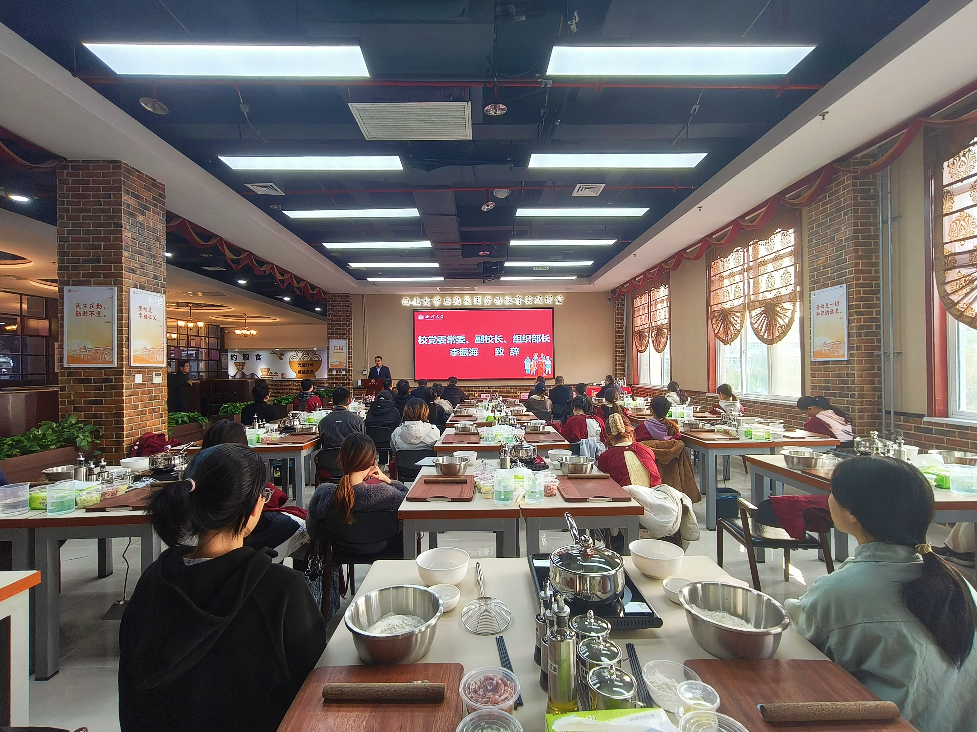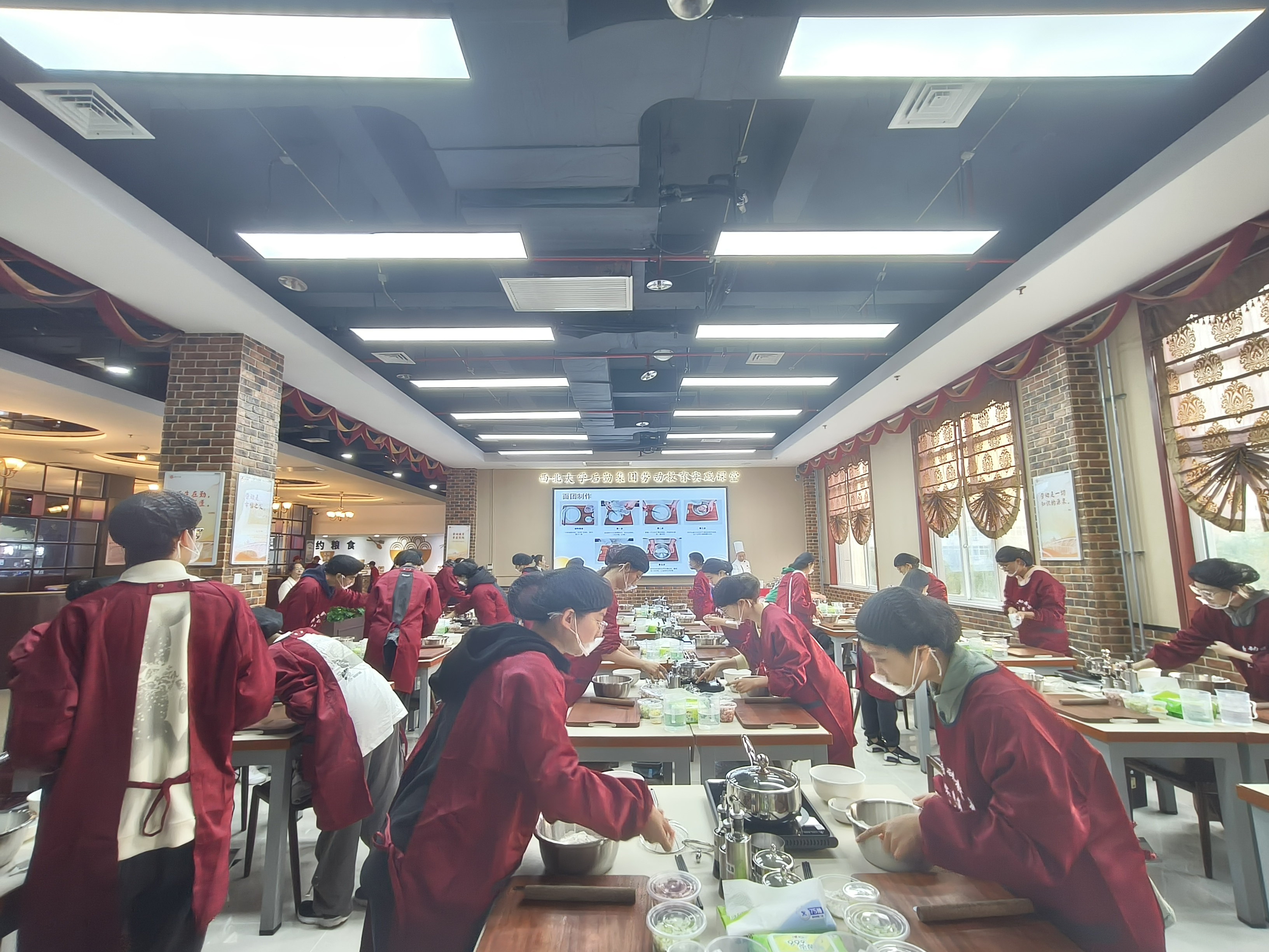 仪式后,烹饪课程老师给学生开授第一节课程手工水饺制作,学生进行现场实操。