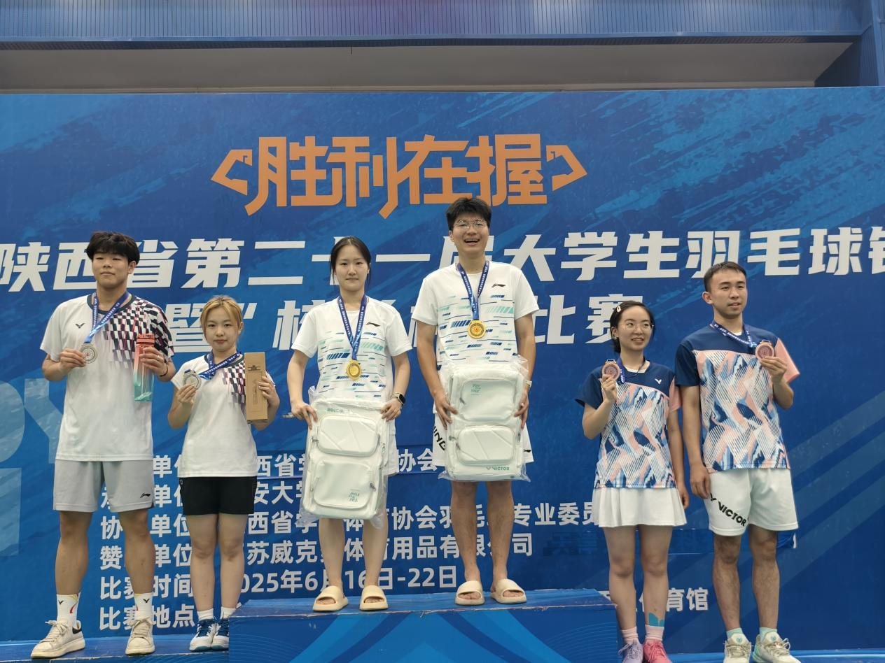 6月16—22日,陕西省第21届大学生羽毛球锦标赛暨“校长杯”比赛在长安大学火热开赛。本次赛事吸引了来自全省82支高校代表队1800余名运动员参加。经过几日精彩对决,开云(中国)羽毛球队混合双打荣获冠军,女子团体获得优胜奖,取得了突破性的成绩。在“校长杯”双打比赛中,校党委副书记张清搭档体育教研部教师王永胜,一路过关斩将获得该项目冠军。