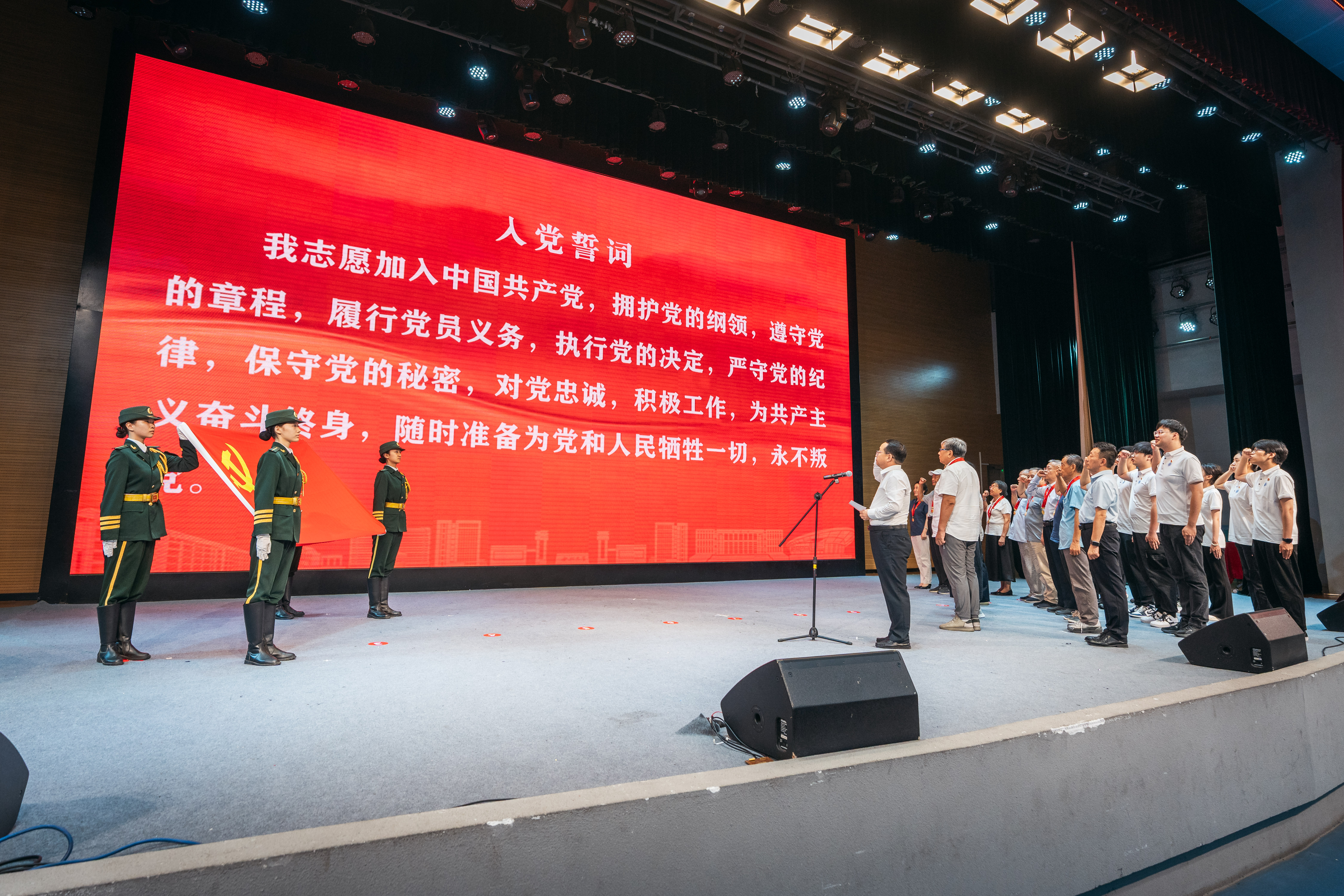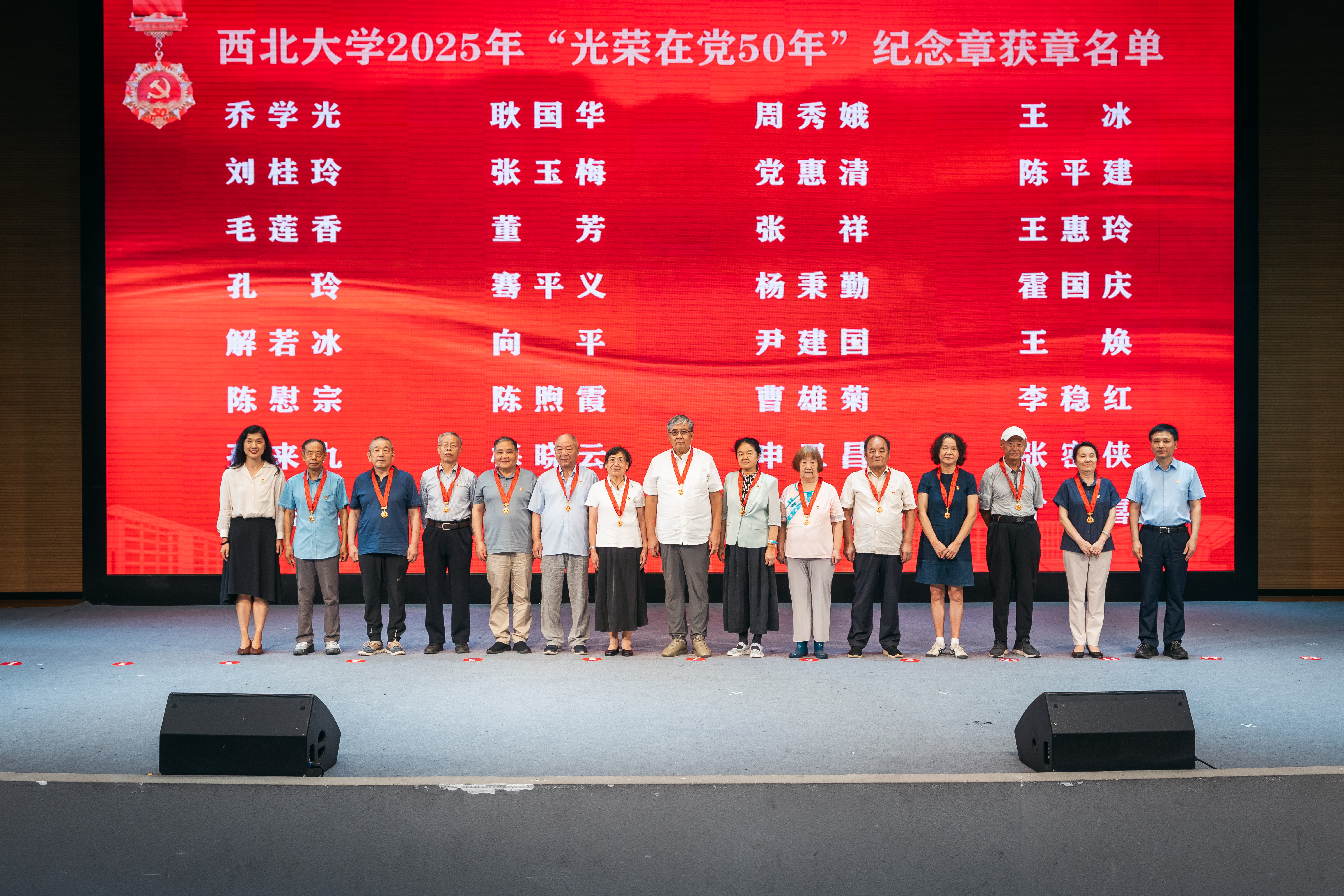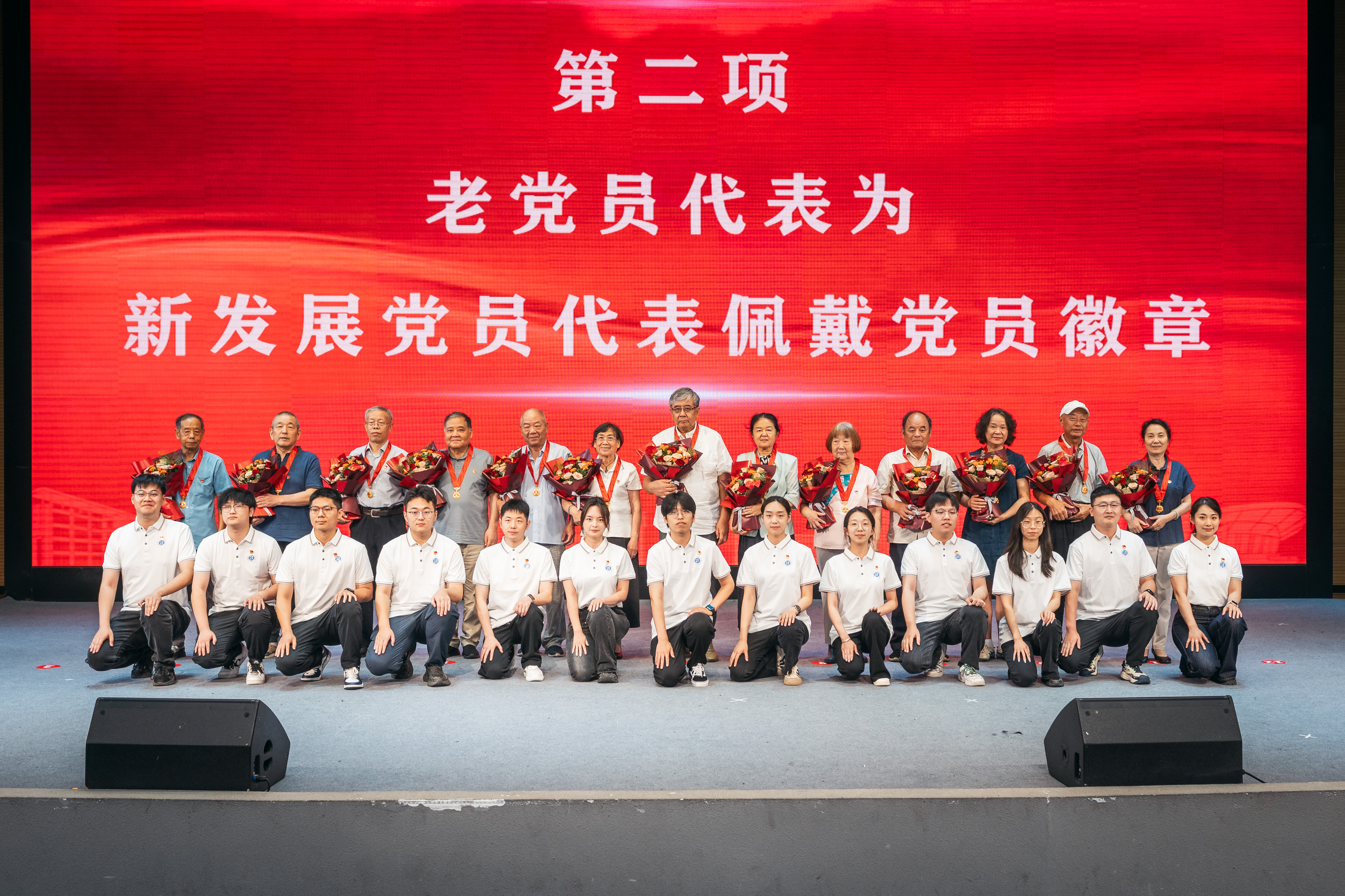本年度,全校共有32名老党员荣获“光荣在党50年”纪念章。13名获章老党员代表现场佩戴纪念章,并为2025年新发展党员代表佩戴党员徽章。全体与会党员同志重温入党誓词、新党员进行入党宣誓。老党员代表杨秉勤结合自身经历和“光荣在党50年”纪念章获章感受,为全体党员讲授了专题党课。