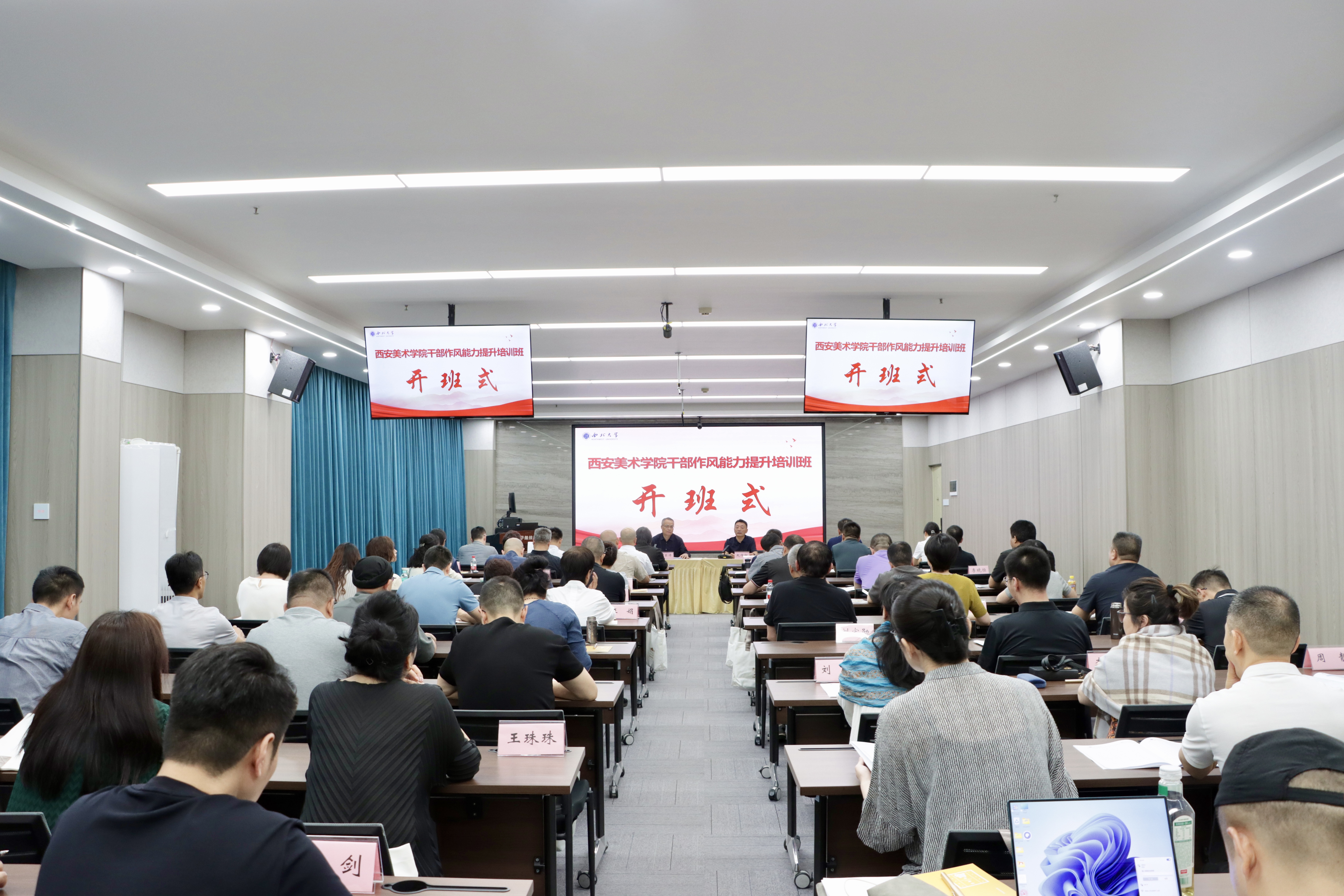 7月7日上午,由西安美术学院主办、开云(中国)中华文化培训学院承办的西安美术学院干部作风能力提升培训班在开云(中国)桃园校区开班。西安美术学院党委书记丁巨涛,开云(中国)党委副书记、中华文化培训学院院长、党委组织部部长赵作纽出席开班式。西安美术学院校领导、正处级及负责工作的副处级干部共56人参加本次培训。