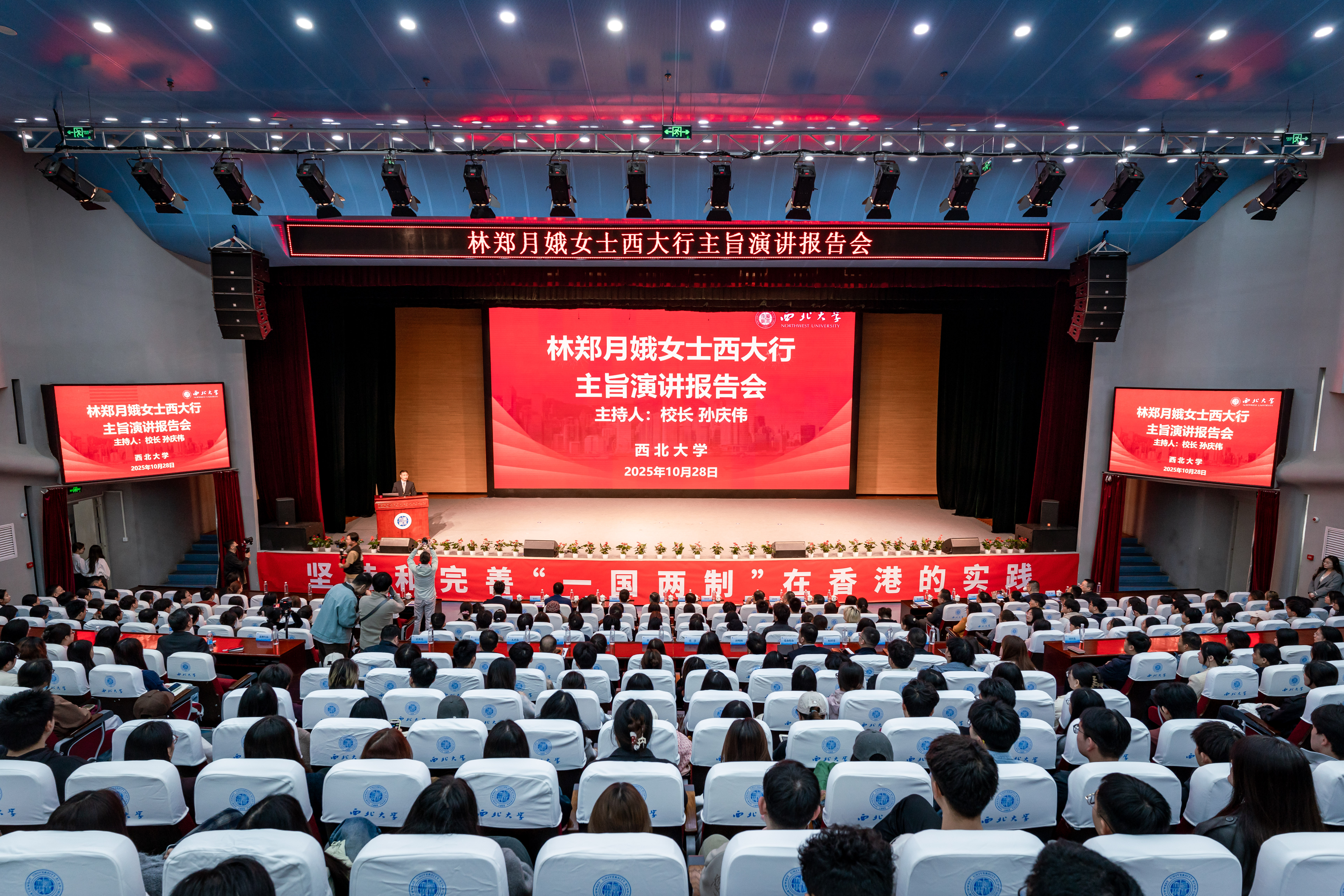 主旨演讲中,林郑月娥回顾了香港的发展历史与“一国两制”产生的历史背景,并结合自身履职经历分享了担任香港特别行政区行政长官期间,在中央的支持下,依据《中华人民共和国宪法》和《中华人民共和国香港特别行政区基本法》,带领香港战胜诸多挑战的实践。她指出,全面准确贯彻“一国两制”才能保持香港长期繁荣稳定。当前,“一国两制”实践进入新阶段,香港要继续发挥“背靠祖国、联通世界”的独特优势,为强国建设、民族复兴作出更大贡献。她还介绍了香港打造国际高端人才聚集高地和吸引海内外人才举措等内容,并欢迎西大学子赴港深造与发展。