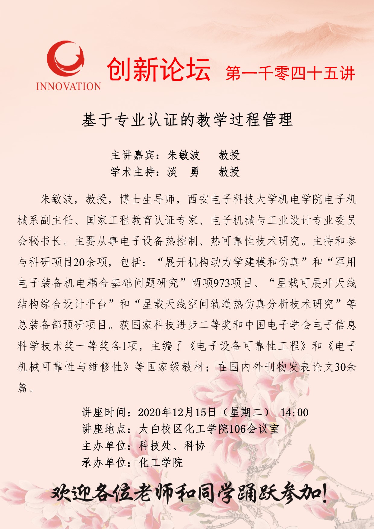 朱敏波 教授 开云网页版登录入口创新论坛第一千零四十五讲:基于专业认证的教学过程管理 讲座时间 2020年12月15日(星期二) 14:00 讲座地点 太白校区化工学院106会议室 讲座人介绍 朱敏波 教授 讲座内容