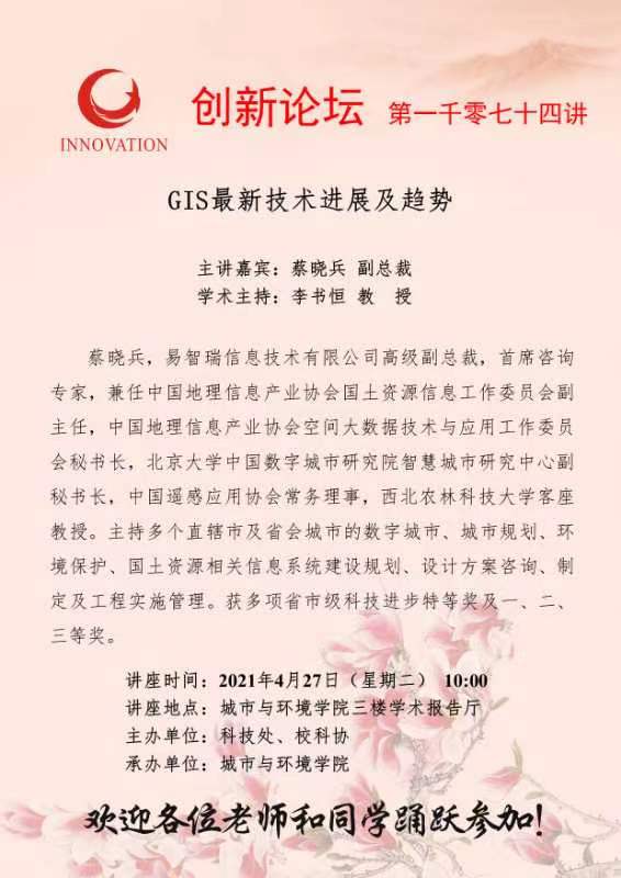 蔡晓兵 副总裁 开云网页版登录入口创新论坛第一千零七十四讲:GIS最新技术进展及趋势 讲座时间 2021年4月27日(星期二) 10:00 讲座地点 城市与环境学院三楼学术报告厅 讲座人介绍 蔡晓兵 副总裁 讲座内容