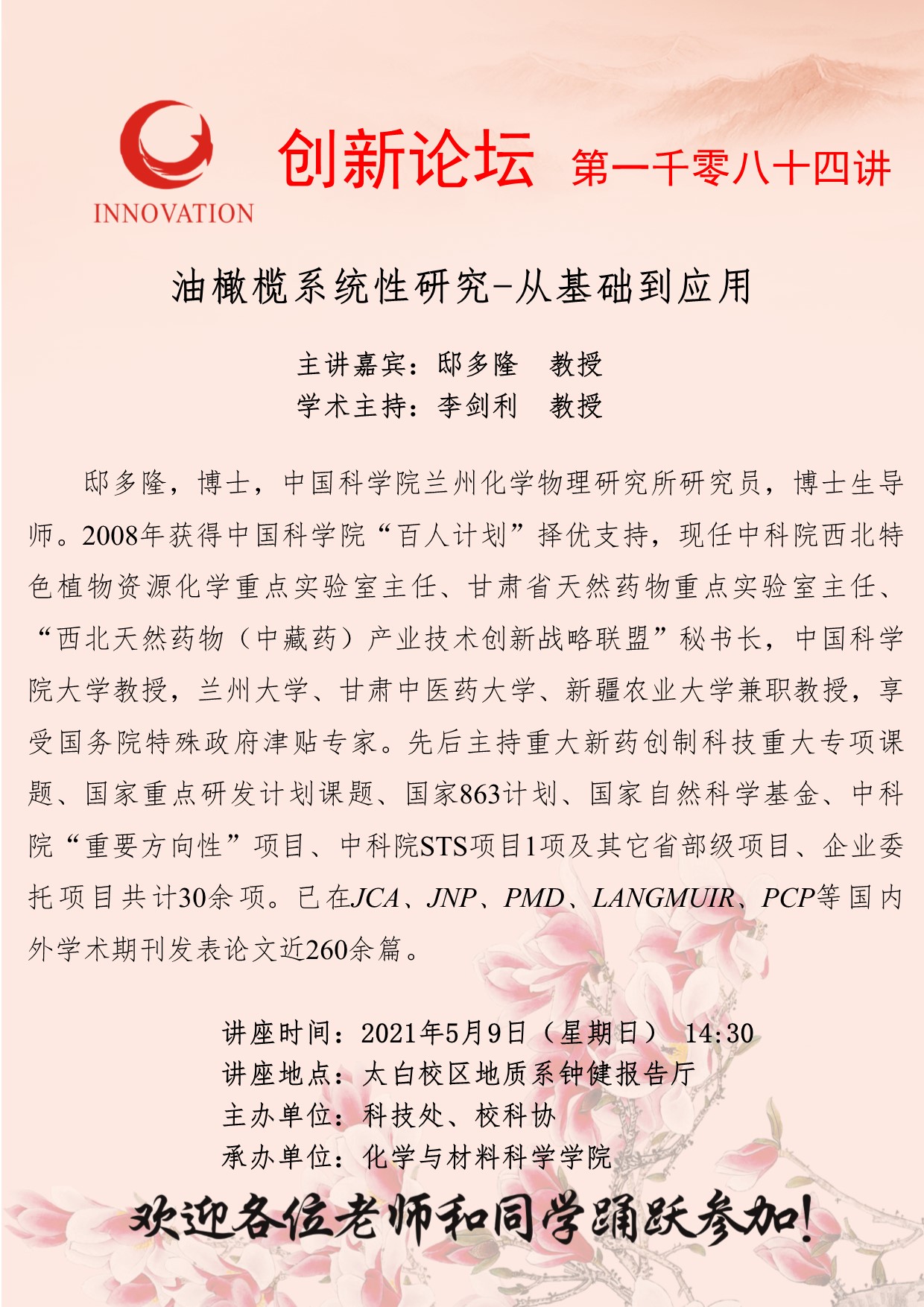 邸多隆 教授 开云网页版登录入口创新论坛第一千零八十四讲:油橄榄系统性研究-从基础到应用 讲座时间 2021年5月9日(星期日) 14:30 讲座地点 太白校区地质系钟健报告厅 讲座人介绍 邸多隆 教授 讲座内容