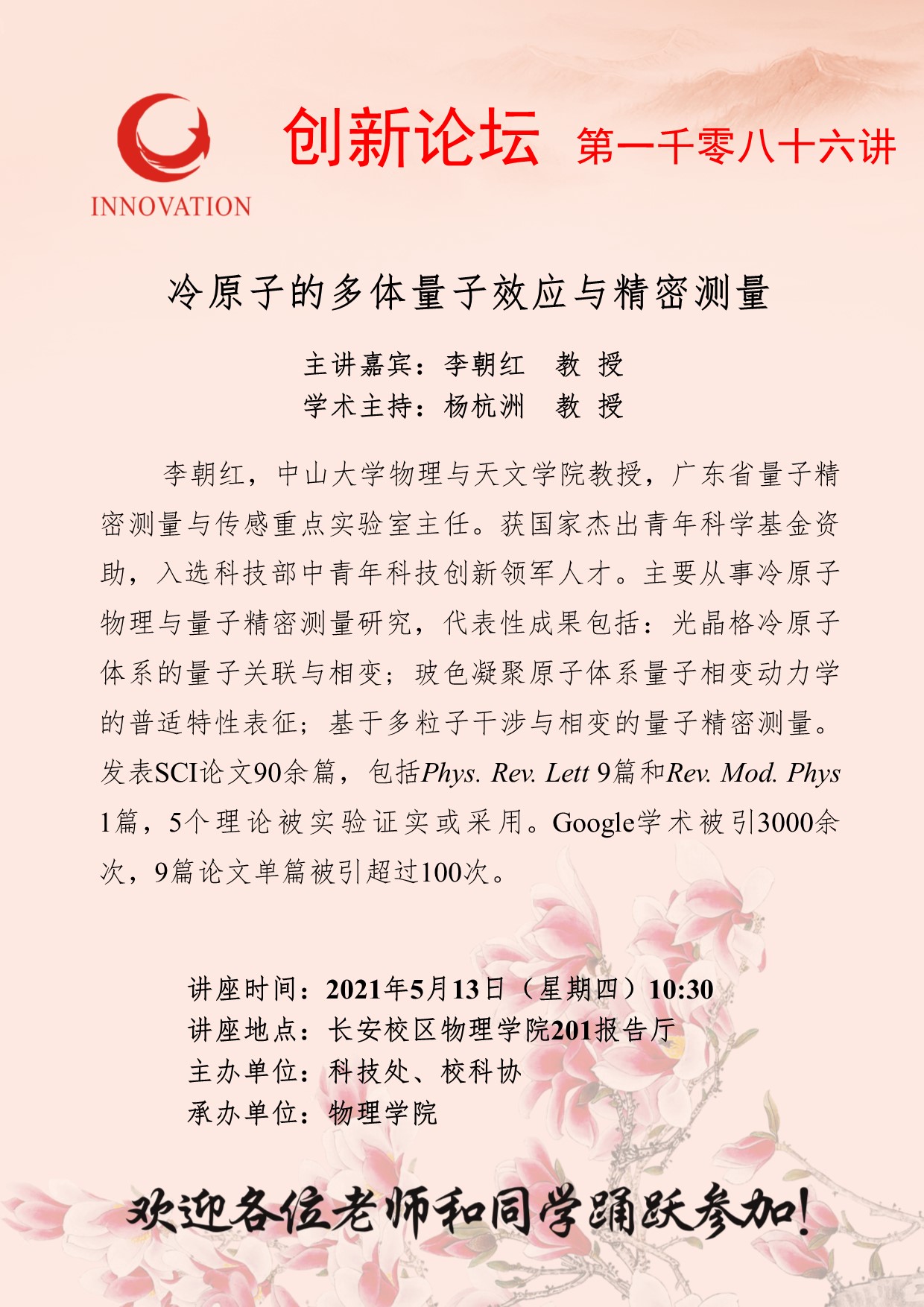 李朝红 教 授 开云网页版登录入口创新论坛第一千零八十六讲:冷原子的多体量子效应与精密测量 讲座时间 2021年5月13日(星期四)10:30 讲座地点 长安校区物理学院201报告厅 讲座人介绍 李朝红 教 授 讲座内容