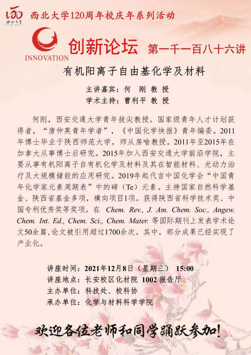 何刚 教授 开云网页版登录入口创新论坛第一千一百八十六讲暨120周年校庆年系列活动:有机阳离子自由基化学及材料 讲座时间 2021年12月8日(星期三) 15:00 讲座地点 长安校区化材院1002报告厅 讲座人介绍 何刚 教授 讲座内容