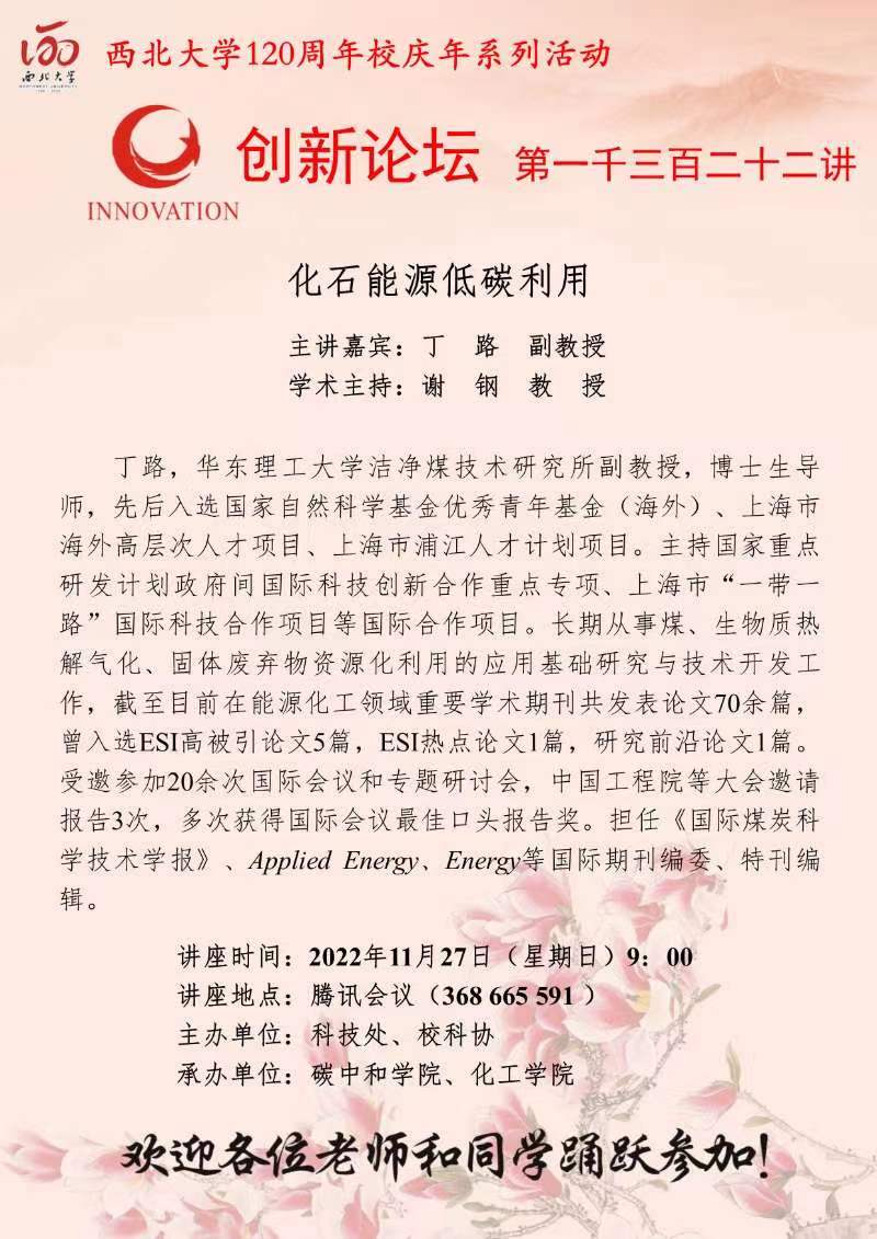 丁路 副教授 开云网页版登录入口创新论坛第一千三百二十二讲暨120周年校庆年系列活动: 化石能源低碳利用 讲座时间 2022年11月27日(星期日) 9:00 讲座地点 腾讯会议368 665 591 讲座人介绍 丁路 副教授 讲座内容