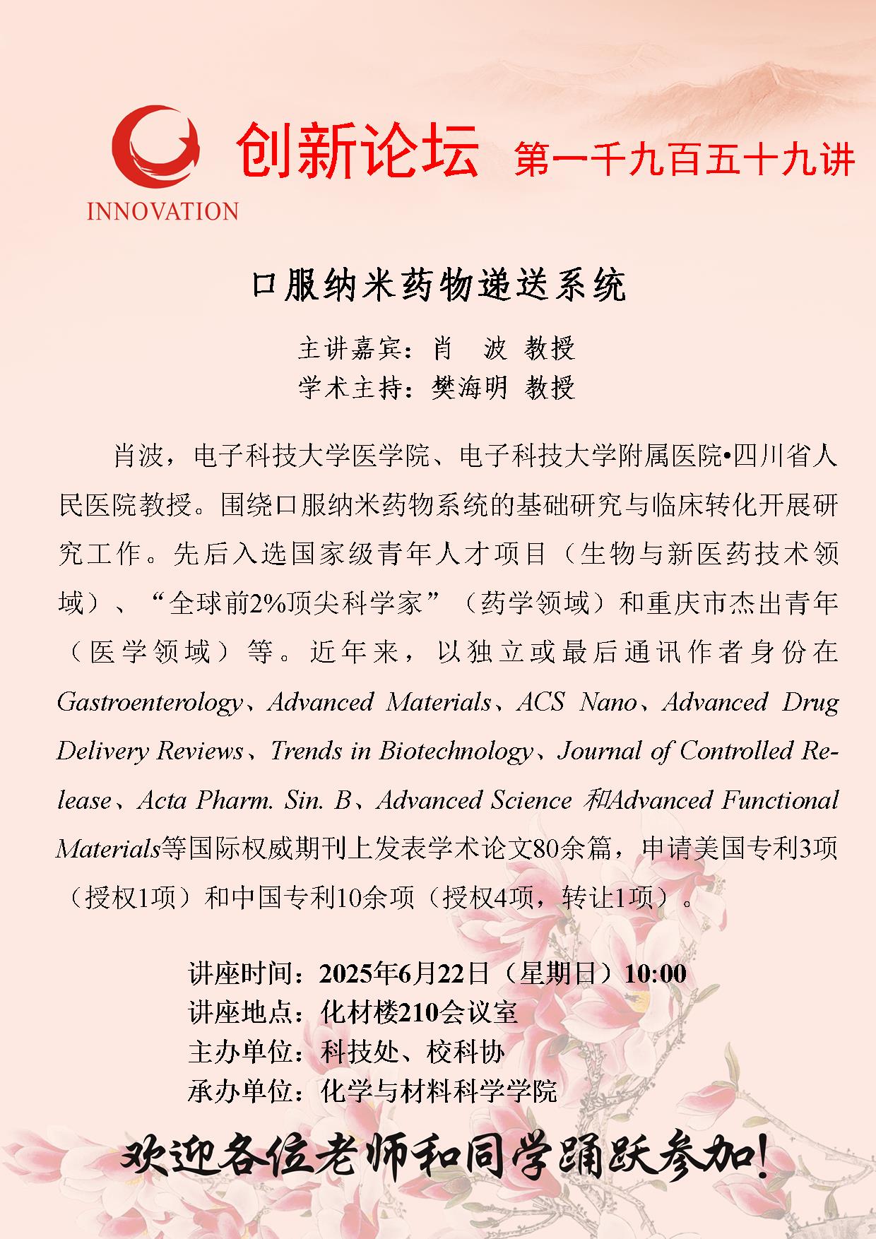 开云网页版登录入口创新论坛第一千九百五十九讲: 口服纳米药物递送系统