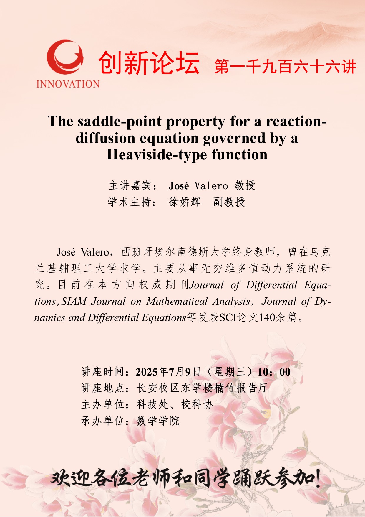 José Valero 教授 开云网页版登录入口创新论坛第一千九百六十六讲:The saddle-point property for a reaction-diffusion equation governed by a Heaviside-type function 讲座时间 2025年7月9日(星期三)10:00 讲座地点 长安校区东学楼楠竹报告厅 讲座人介绍 José Valero 教授 讲座内容