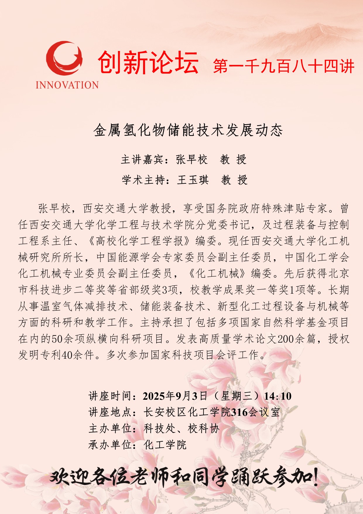 张早校 教授 开云网页版登录入口创新论坛第一千九百八十四讲:金属氢化物储能技术发展动态 讲座时间 2025年9月3日(星期三)14:10 讲座地点 长安校区化工学院316会议室 讲座人介绍 张早校 教授 讲座内容