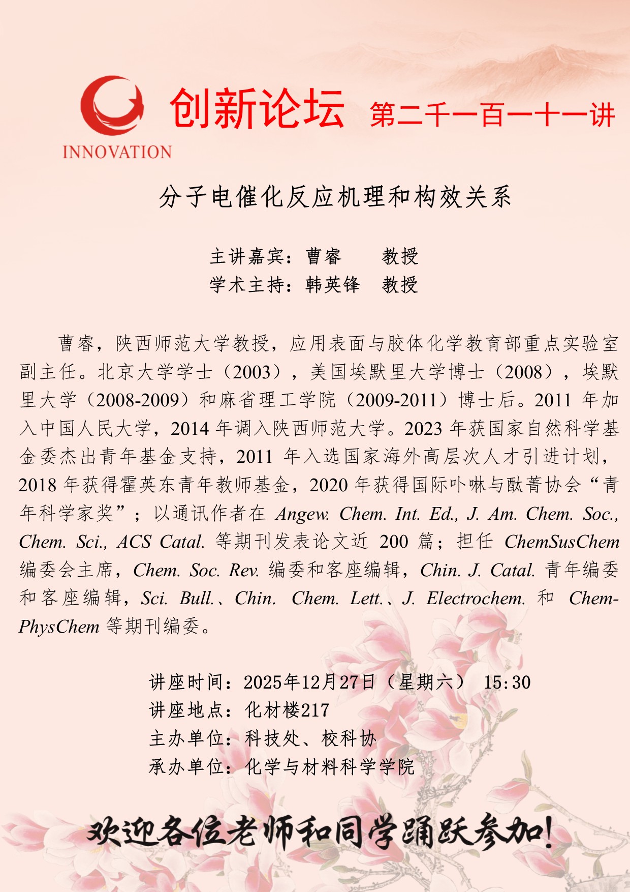 开云网页版登录入口创新论坛第二千一百一十一讲:分子电催化反应机理和构效关系
