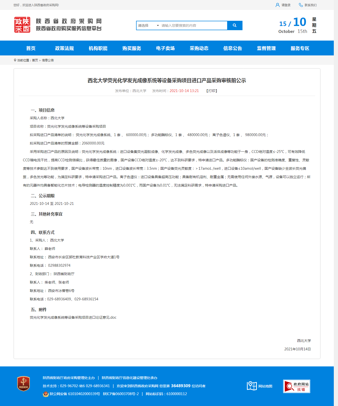 开云网页版登录入口荧光化学发光成像系统等设备采购项目进口产品采购审核前公示 作者: 编辑:采购与招标办公室 时间:2021-10-15 原公告地址:http://www.ccgp-shaanxi.gov.cn/notice/noticeDetail.do?noticeguid=8a85be327c20d508017c7d292ccd6e1a