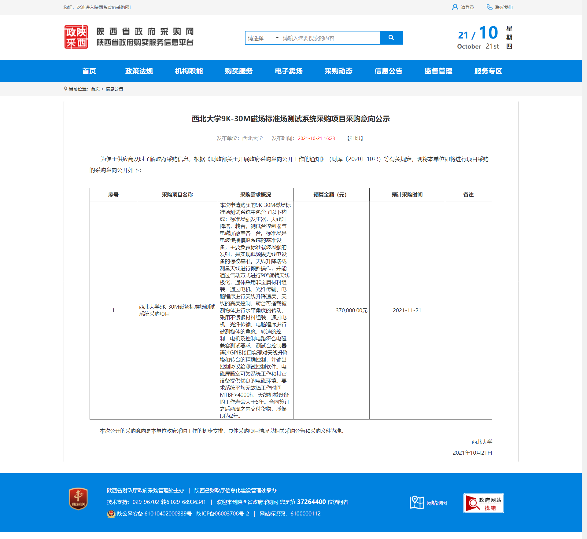 开云网页版登录入口9K-30M磁场标准场测试系统采购项目采购意向公示 作者: 编辑:采购与招标办公室 时间:2021-10-21 原公告地址:http://ccgp-shaanxi.gov.cn/notice/noticeDetail.do?noticeguid=8a85be337c20d0b4017ca1bd9ec34088