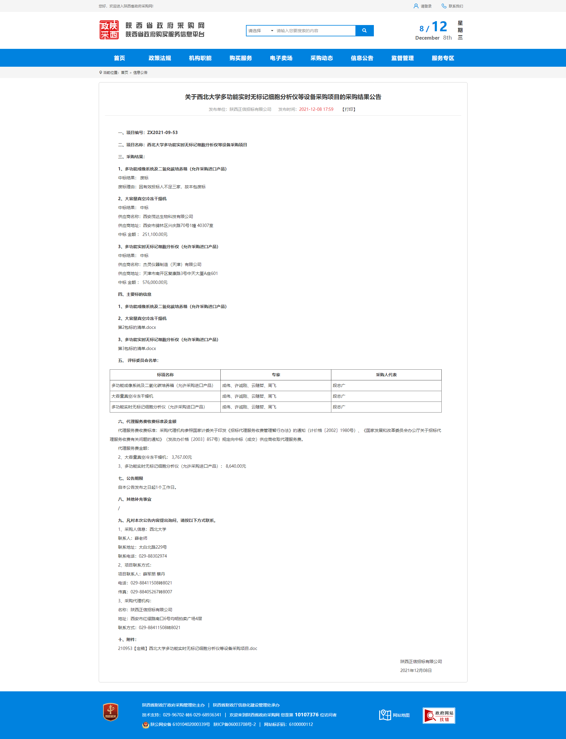 关于开云网页版登录入口多功能实时无标记细胞分析仪等设备采购项目的采购结果公告