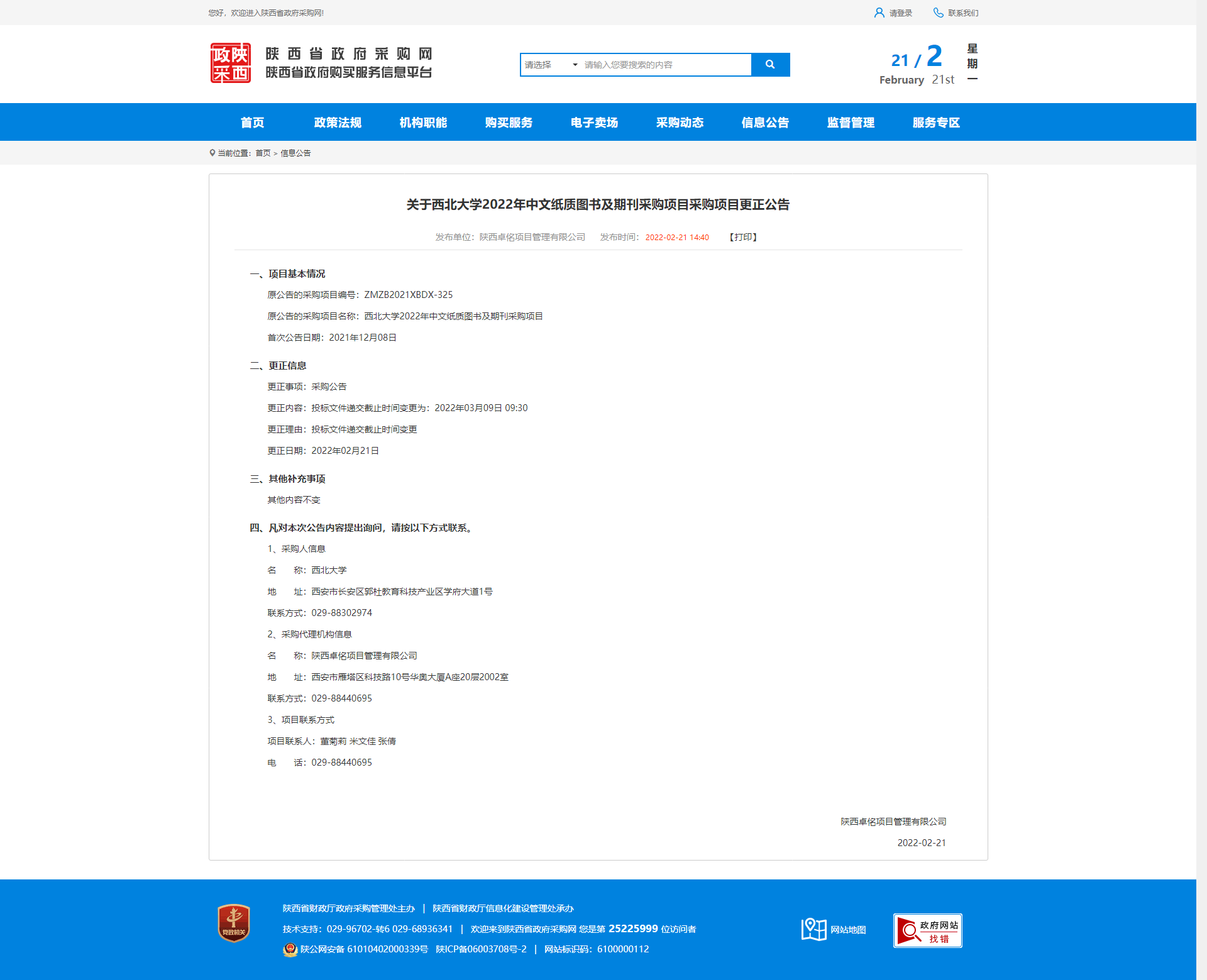 关于开云网页版登录入口2022年中文纸质图书及期刊采购项目采购项目更正公告 作者: 编辑:薛利娟 时间:2022-02-21 原公告地址:http://www.ccgp-shaanxi.gov.cn/notice/noticeDetail.do?noticeguid=8a85be317ee7907d017f1aa113f346e8