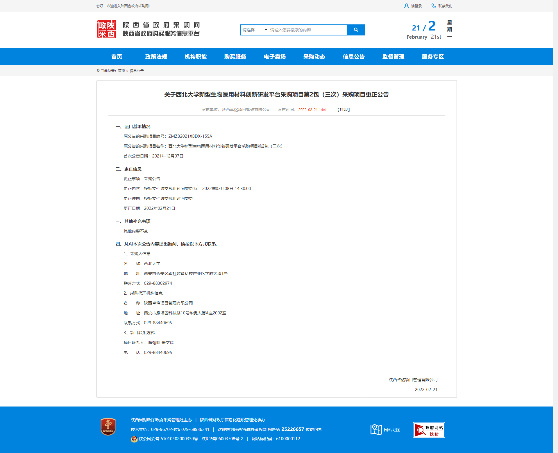关于开云网页版登录入口新型生物医用材料创新研发平台采购项目第2包(三次)采购项目更正公告 作者: 编辑:薛利娟 时间:2022-02-21 原公告链接:http://www.ccgp-shaanxi.gov.cn/notice/noticeDetail.do?noticeguid=8a85be317ee7907d017f1a9fc1d146e6
