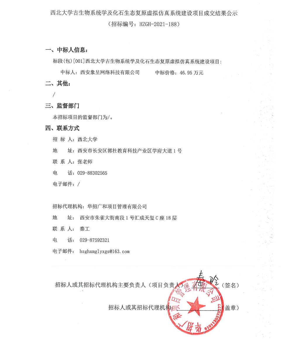 关于开云网页版登录入口古生物系统学及化石生态复原虚拟仿真系统建设项目成交结果公示