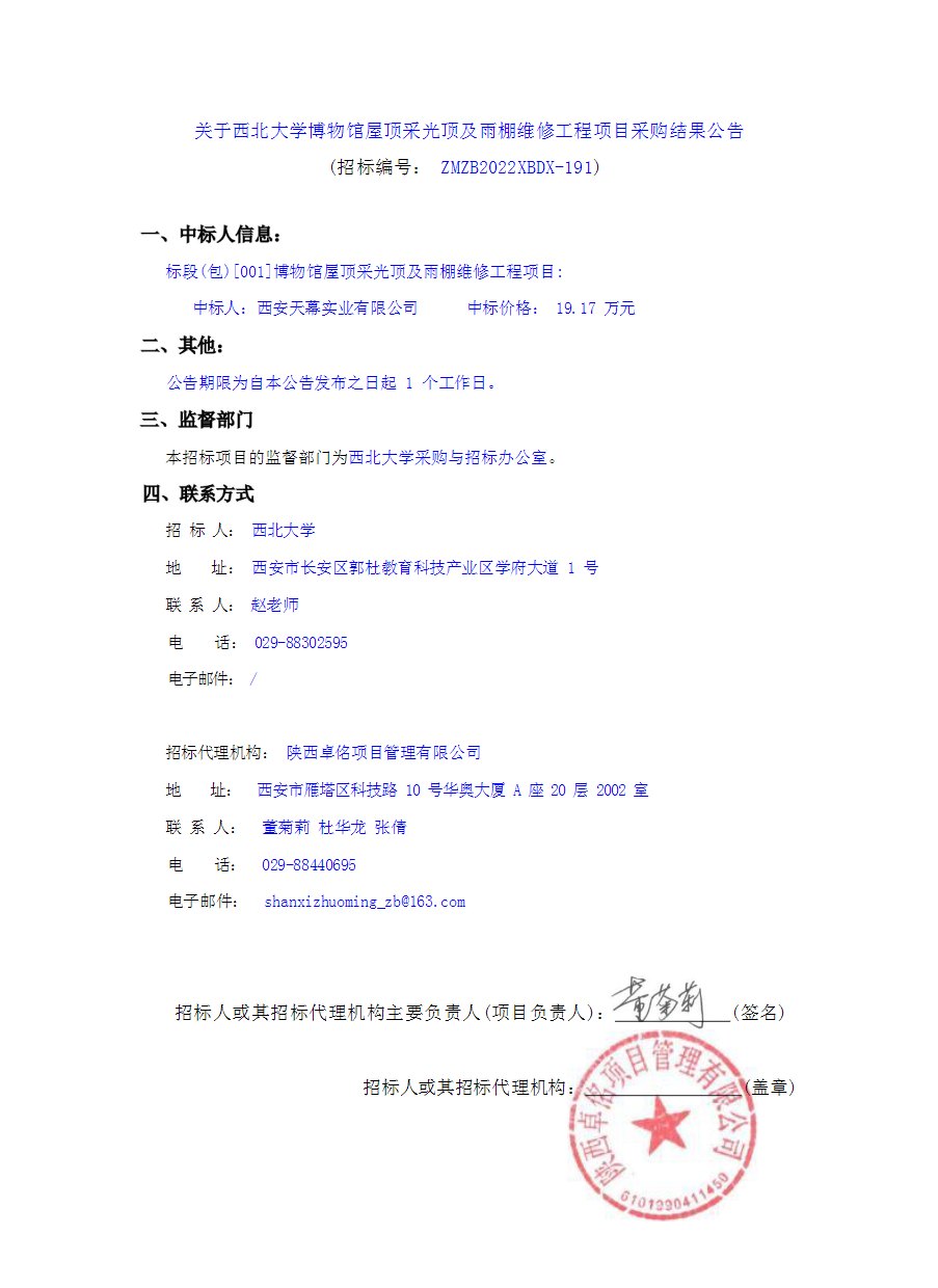 关于开云网页版登录入口博物馆屋顶采光顶及雨棚维修工程项目采购结果公告