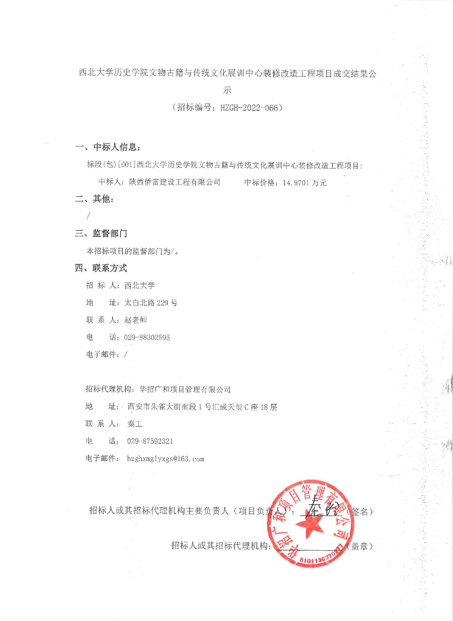 开云网页版登录入口历史学院文物古籍与传统文化展训中心装修改造工程项目成交结果公示