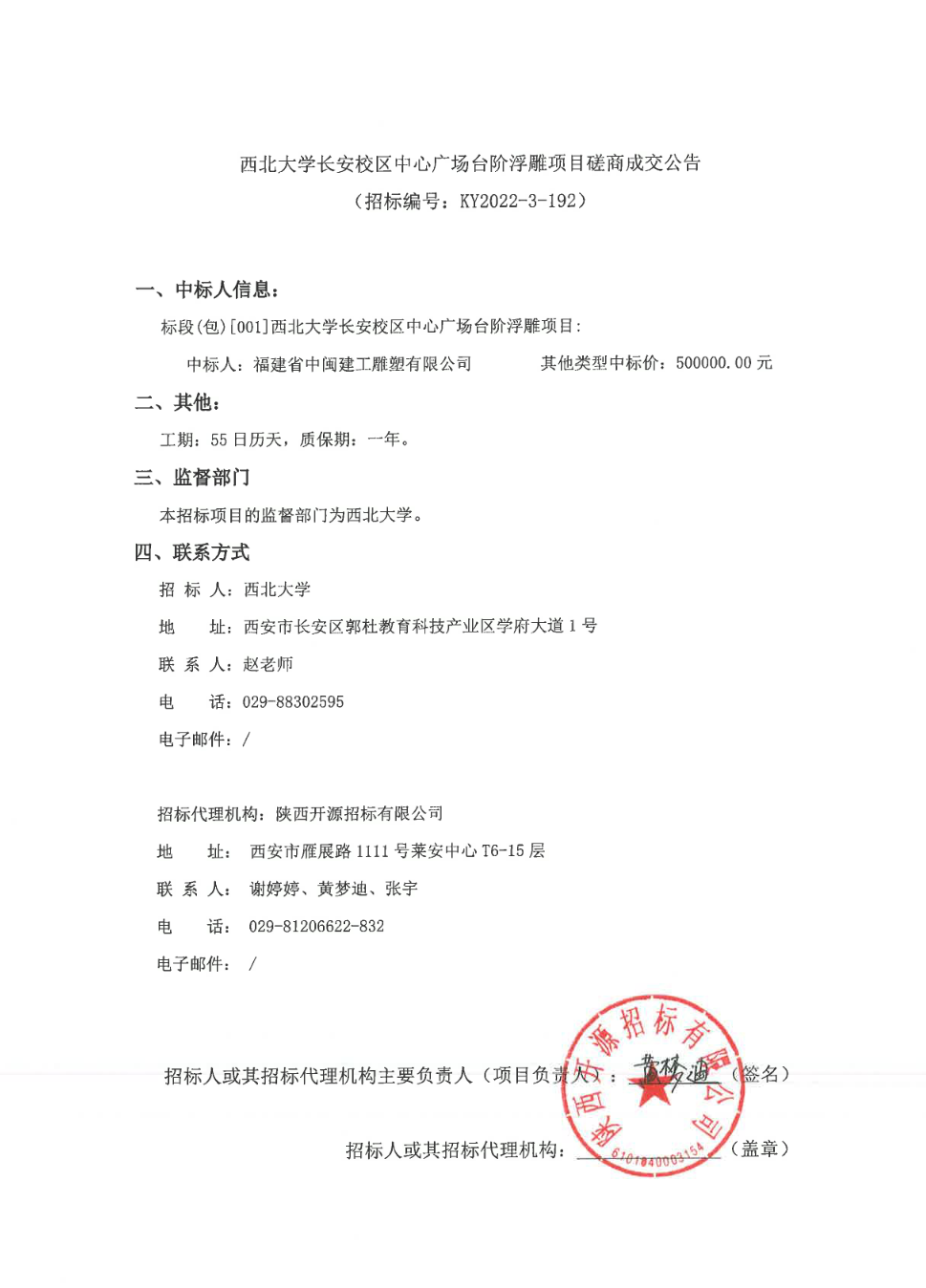 开云网页版登录入口长安校区中心广场台阶浮雕项目磋商成交公告