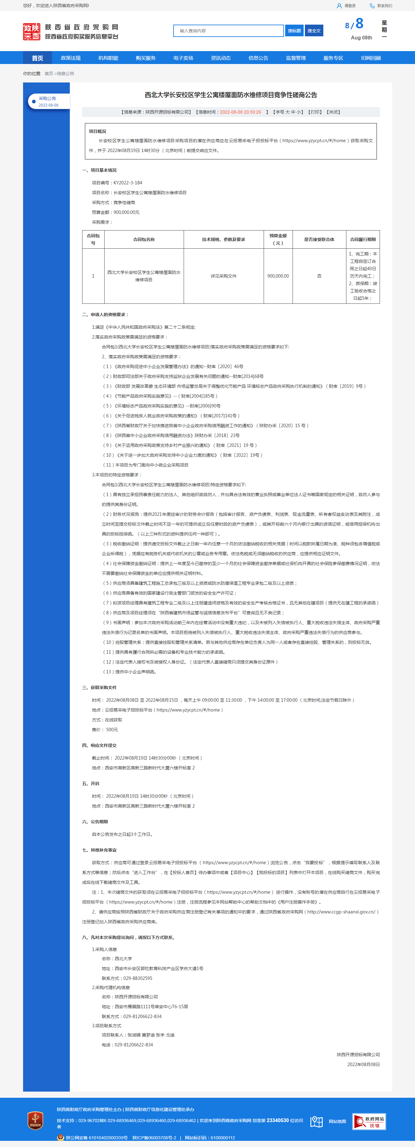 开云网页版登录入口长安校区学生公寓楼屋面防水维修项目竞争性磋商公告
