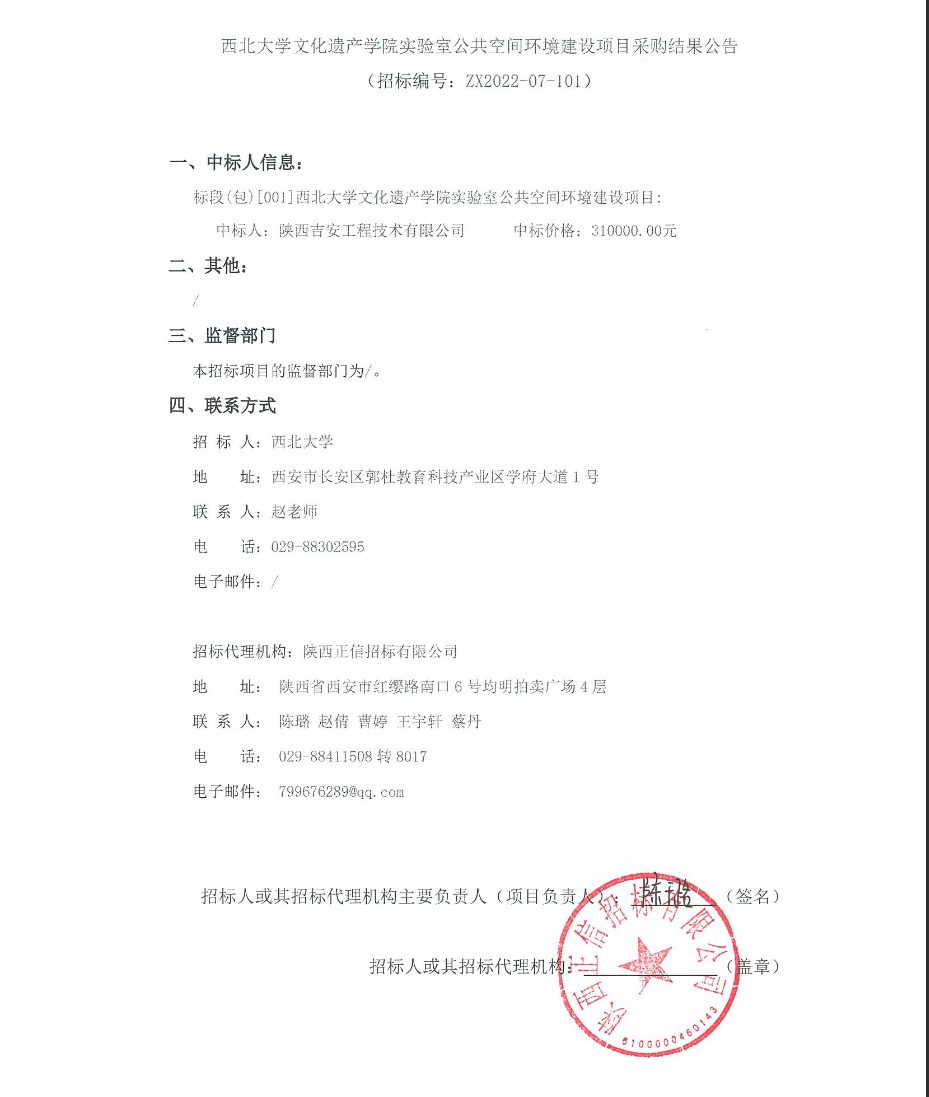 开云网页版登录入口文化遗产学院实验室公共空间环境建设项目采购结果公告