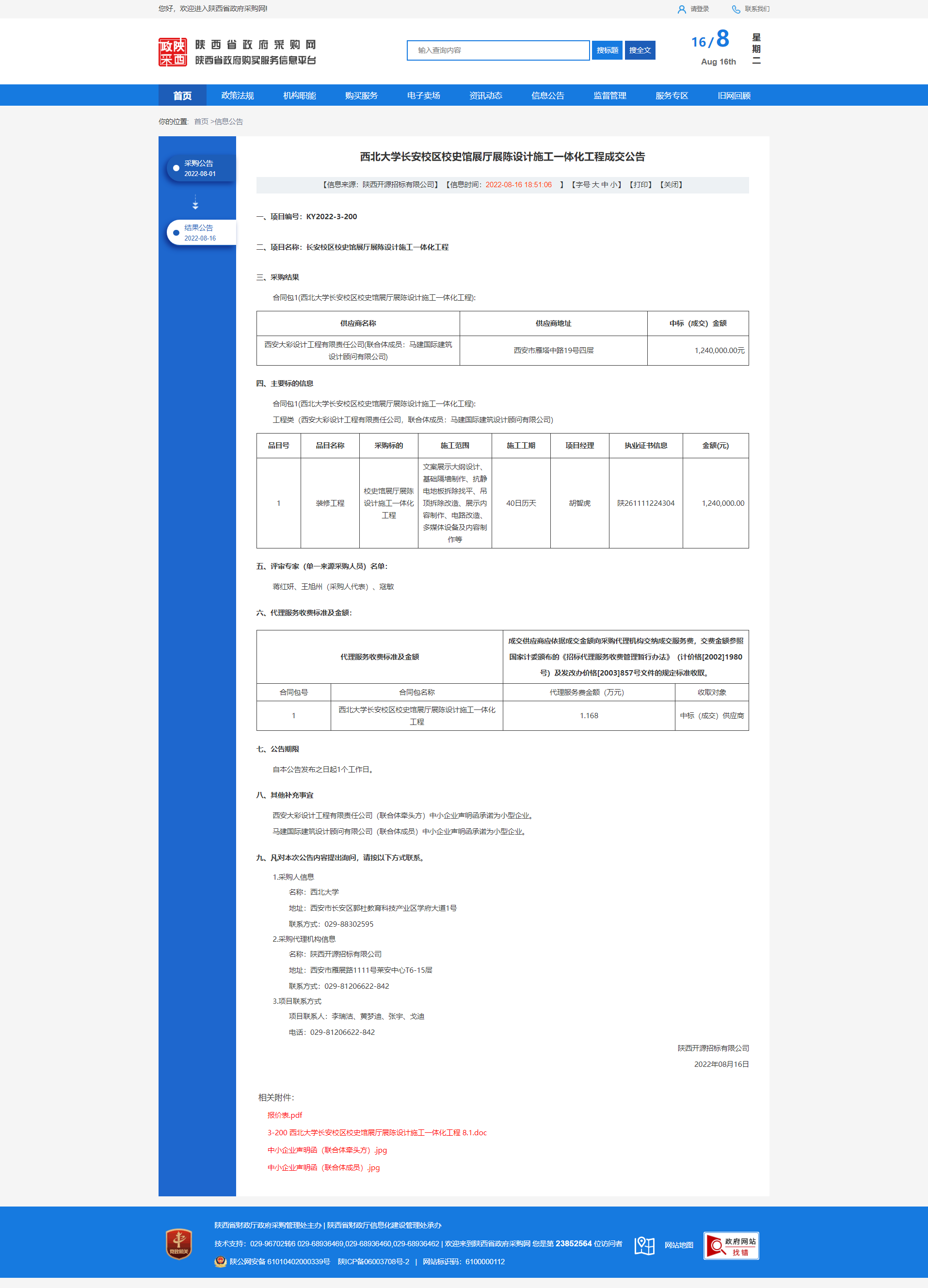 开云网页版登录入口长安校区校史馆展厅展陈设计施工一体化工程成交公告