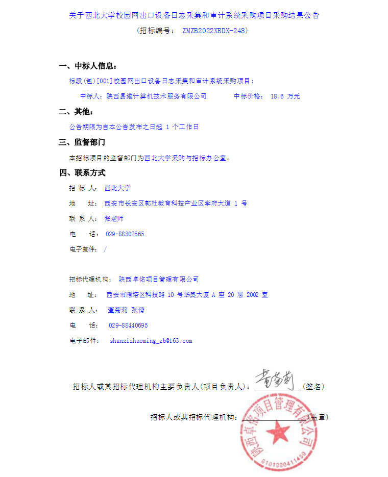 关于开云网页版登录入口校园网出口设备日志采集和审计系统采购项目采购结果公告
