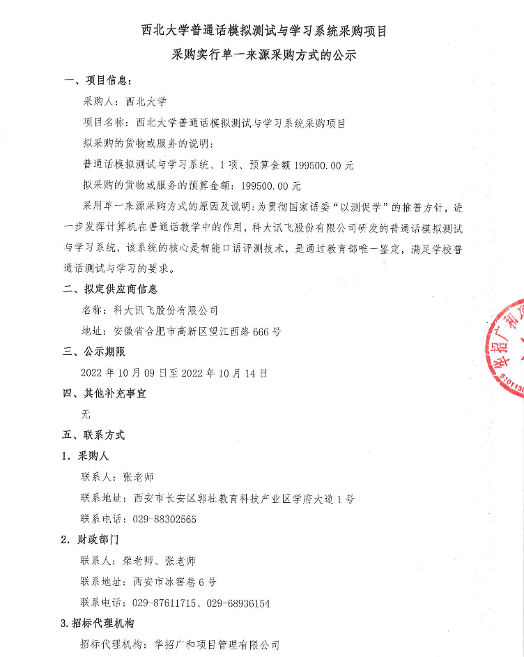 开云网页版登录入口普通话模拟测试与学习系统采购项目采购实行单一来源采购方式的公示