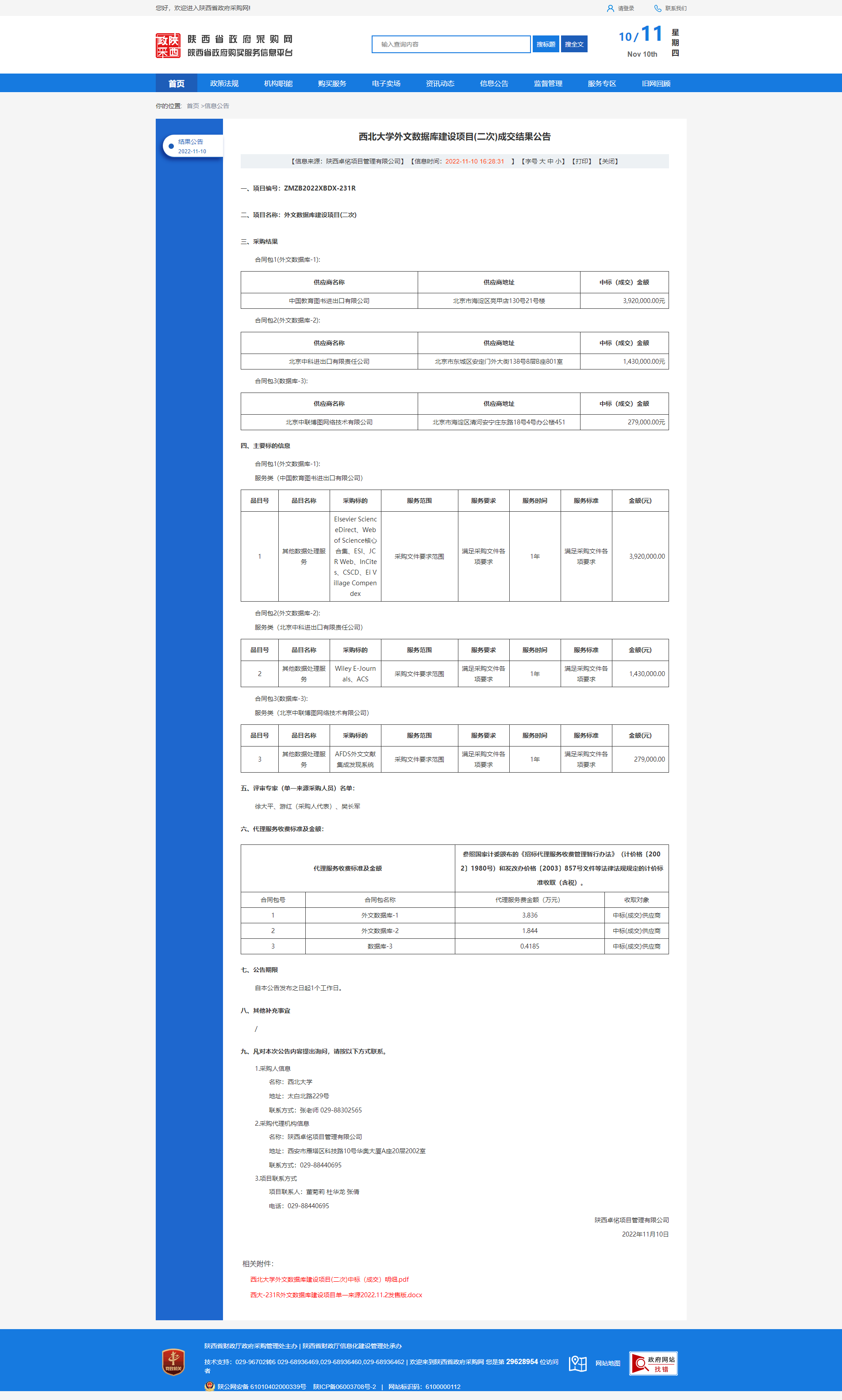 开云网页版登录入口外文数据库建设项目(二次)成交结果公告