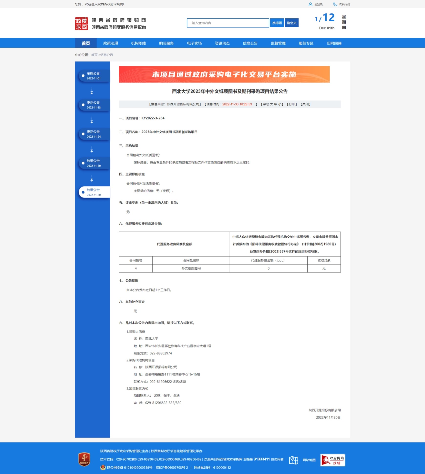 开云网页版登录入口2023年中外文纸质图书及期刊采购项目结果公告(第4包) 作者: 编辑:采购与招标办公室 时间:2022-12-01 原公告链接:http://www.ccgp-shaanxi.gov.cn/freecms/site/shaanxi/ggxx/info/2022/8a69c8558405a9700184c8053d036584.html?noticeType=001006¬iceId=985a6065-709a-11ed-9a8e-08c0eb20c666