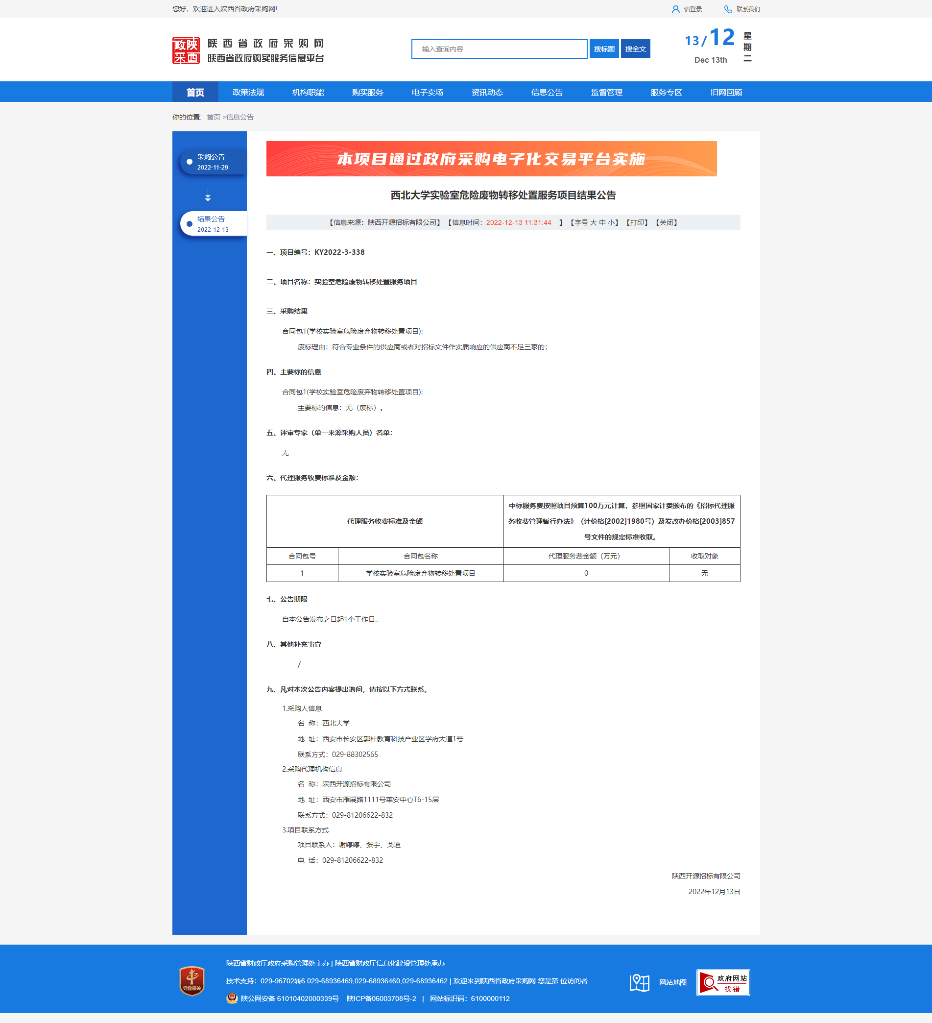 开云网页版登录入口实验室危险废物转移处置服务项目结果公告