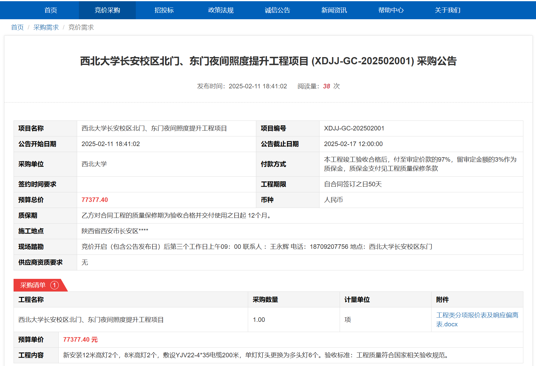 开云网页版登录入口长安校区北门、东门夜间照度提升工程项目(XDJJ-GC-202502001)竞价采购公告 作者:采购与招标办公室 编辑: 时间:2025-02-11 原公告链接:https://www.ejingcai.com.cn/site/bidding/detail/16497