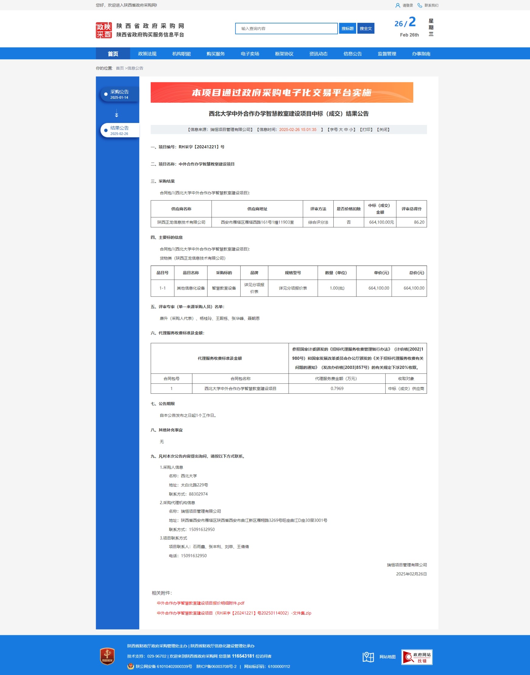 开云网页版登录入口中外合作办学智慧教室建设项目中标(成交)结果公告 作者: 编辑:采购与招标办公室 时间:2025-02-26 原公告链接:https://www.ccgp-shaanxi.gov.cn/freecms/site/shaanxi/ggxx/info/2025/8a69c07394fffbb3019540f217e8256e.html?noticeType=001021¬iceId=47d2d283-f411-11ef-8063-08c0eb20c666