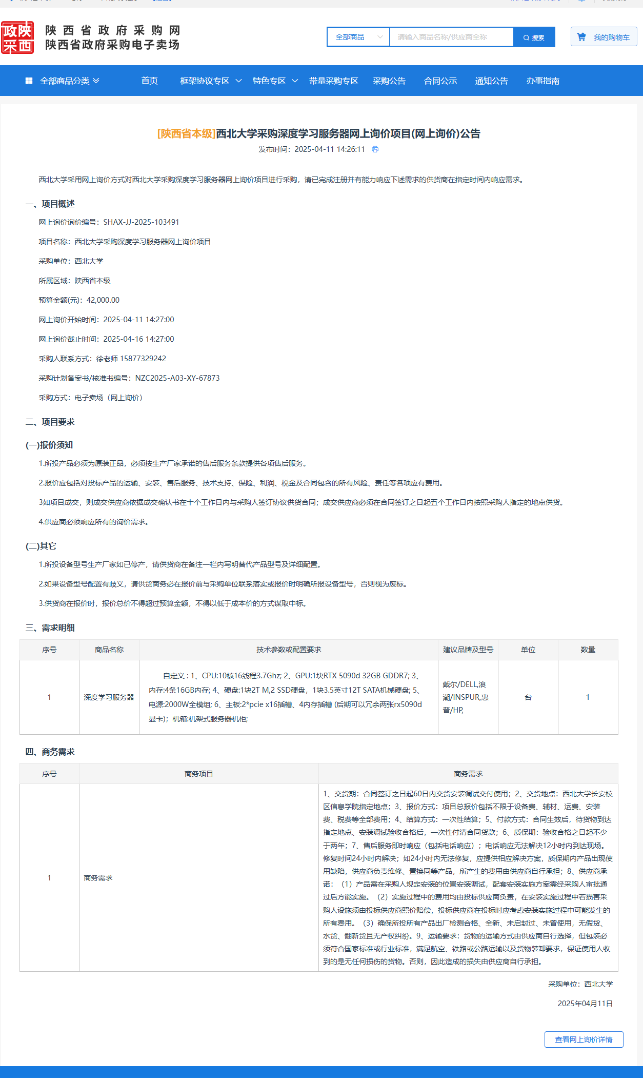 开云网页版登录入口采购深度学习服务器网上询价项目(网上询价)公告 作者:采购与招标办公室 编辑: 时间:2025-04-11 原公告链接:https://www.ccgp-shaanxi.gov.cn/gpmall-main-web/basic/noticeDetail?noticeGuid=7309727879137525760