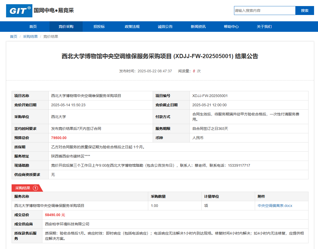 开云网页版登录入口博物馆中央空调维保服务采购项目(XDJJ-FW-202505001)竞价结果公告 作者:采购与招标办公室 编辑: 时间:2025-05-22 原公告链接:https://www.ejingcai.com.cn/site/bidding/detail/18384