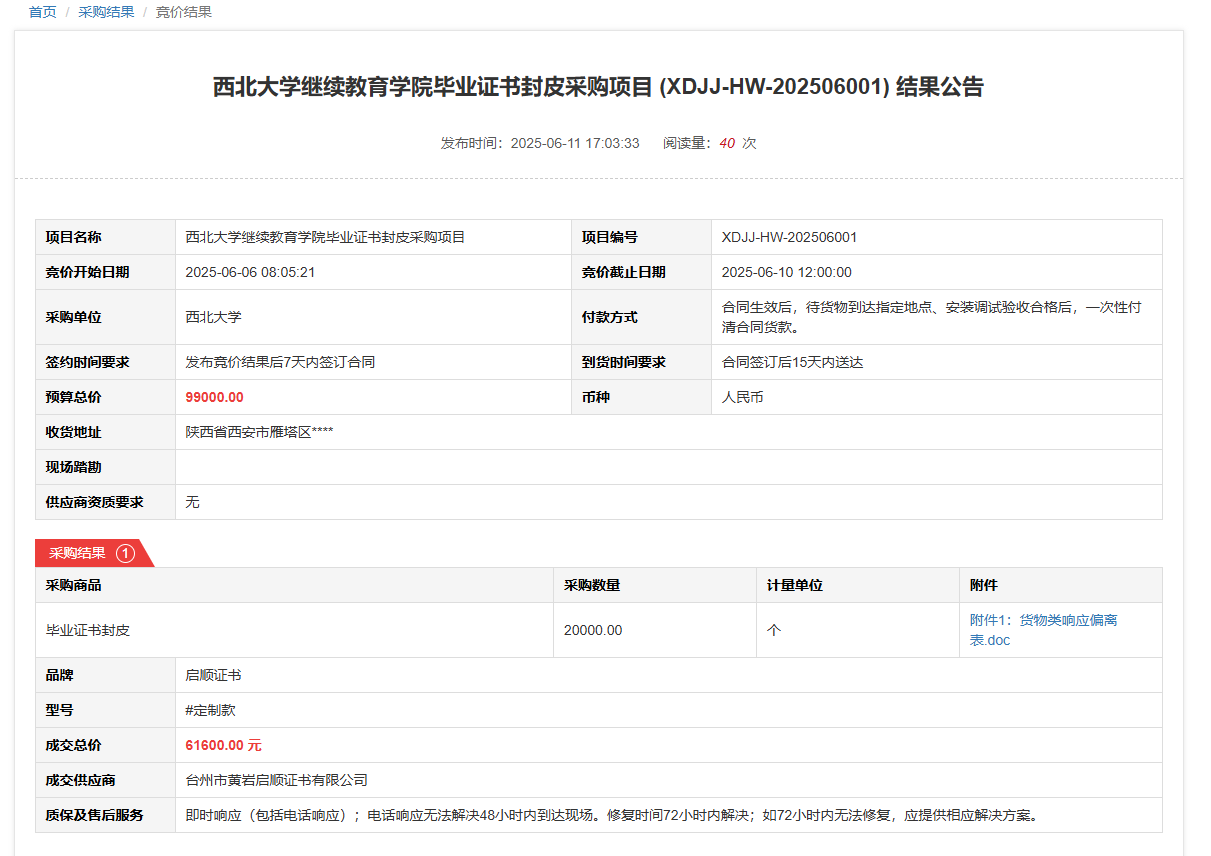 开云网页版登录入口继续教育学院毕业证书封皮采购项目(XDJJ-HW-202506001)竞价结果公告 作者:采购与招标办公室 编辑: 时间:2025-06-12 原公告链接:https://www.ejingcai.com.cn/site/bidding/detail/18846