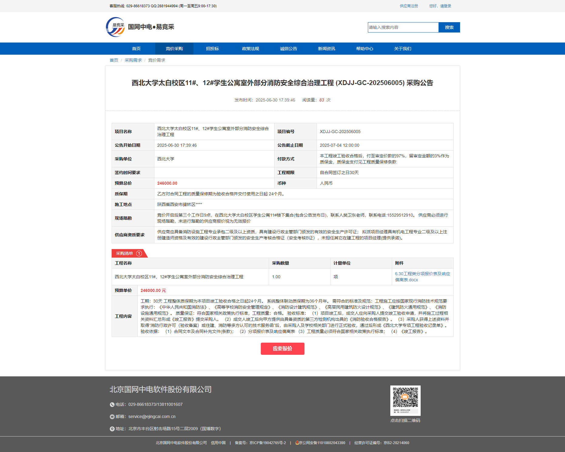 开云网页版登录入口太白校区11#、12#学生公寓室外部分消防安全综合治理工程 (XDJJ-GC-202506005) 采购公告