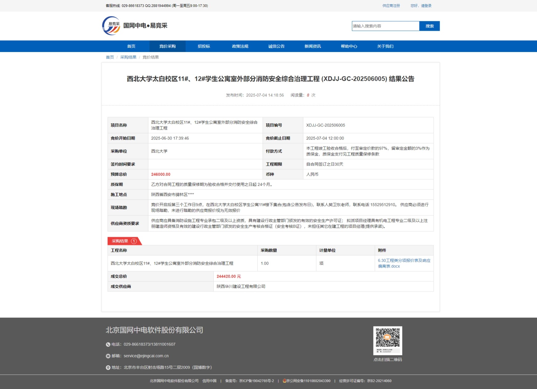 开云网页版登录入口太白校区11#、12#学生公寓室外部分消防安全综合治理工程 (XDJJ-GC-202506005) 结果公告 作者: 编辑:采购与招标办公室 时间:2025-07-04 原公告链接:https://www.ejingcai.com.cn/site/bidding/detail/19344