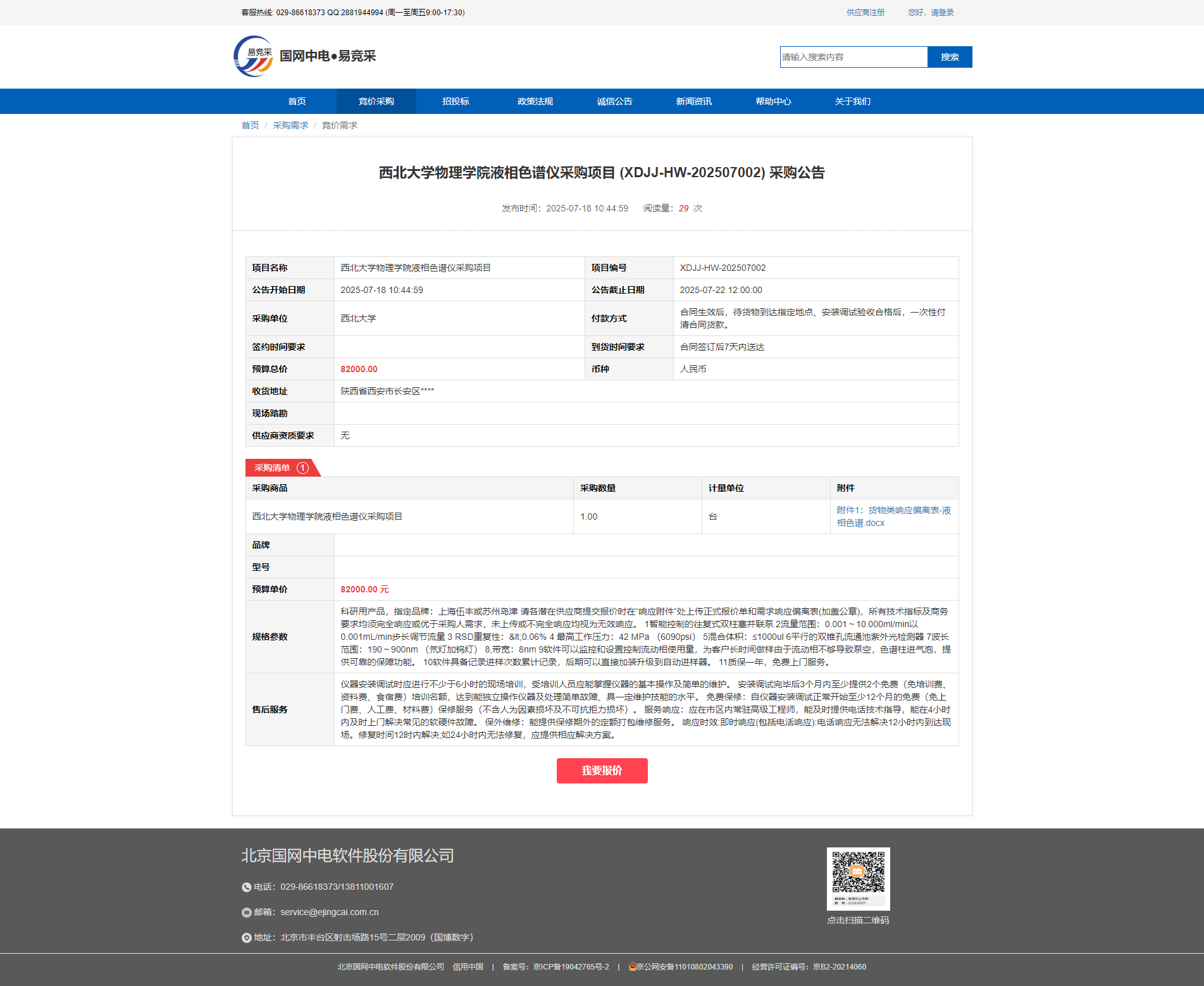 开云网页版登录入口物理学院液相色谱仪采购项目 (XDJJ-HW-202507002) 采购公告