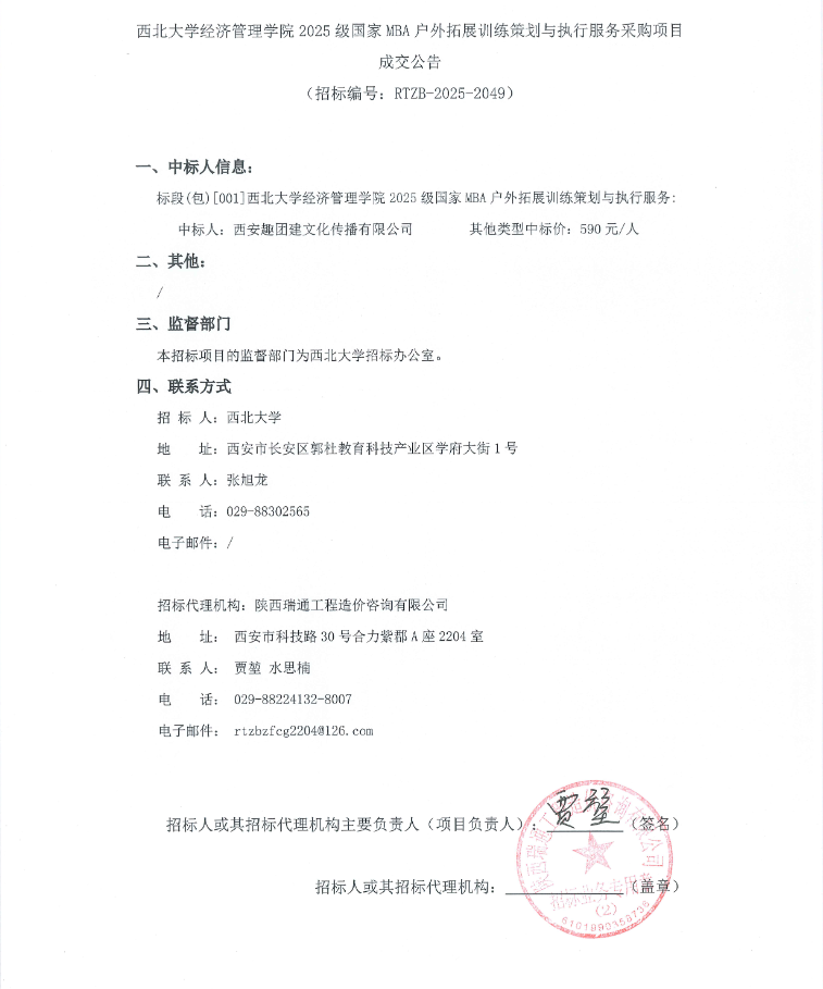 开云网页版登录入口经济管理学院2025级国家MBA户外拓展训练策划与执行服务采购项目成交公告