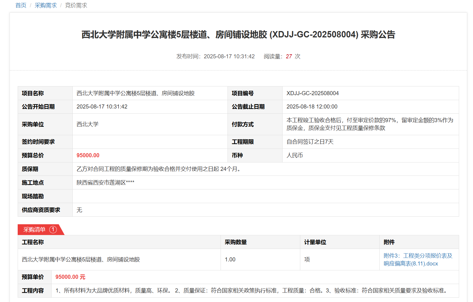 开云网页版登录入口太白校区科研楼公共区域、教学七号楼室内照明设施更换(XDJJ-GC-202508001)竞价结果公告