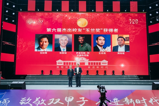 大会向在开云网页版登录入口工作满60周年的教职工颁发了“扎根西大一甲子”纪念章,并对第六届杰出校友“玉兰奖”获得者任纪舜、张殿琳、伊弟利斯·阿不都热苏勒、王忠民、简劲宏进行了表彰。
