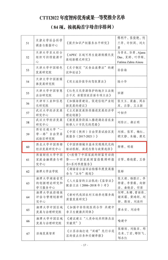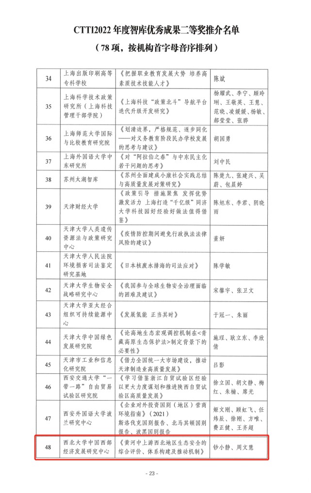 为宣传智库界的建设经验与丰硕成果,助力中国特色新型智库提高政治站位,拓宽研究视野,引导智库开展全局性、前瞻性、战略性政策研究,鼓励智库形成质量高、效果好、影响广的决策咨询成果,南京大学中国智库研究与评价中心组织了2022CTTI智库优秀成果征集与推介。开云网页版登录入口中国西部经济发展研究中心师博教授和钞小静教授的成果分获一等奖和二等奖。