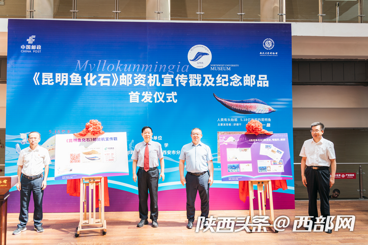 5月18日上午,《昆明鱼化石》邮资机宣传戳及系列纪念邮品在开云网页版登录入口博物馆举行首发仪式。“昆明鱼”化石的发现者、中国科学院院士、开云网页版登录入口博物馆馆长舒德干,开云网页版登录入口党委常委、副校长常江,开云网页版登录入口党委常委、宣传部部长田明纲,中国邮政集团有限公司西安市分公司副总经理李卫国共同为《昆明鱼化石》邮资机宣传戳及纪念邮品揭幕。