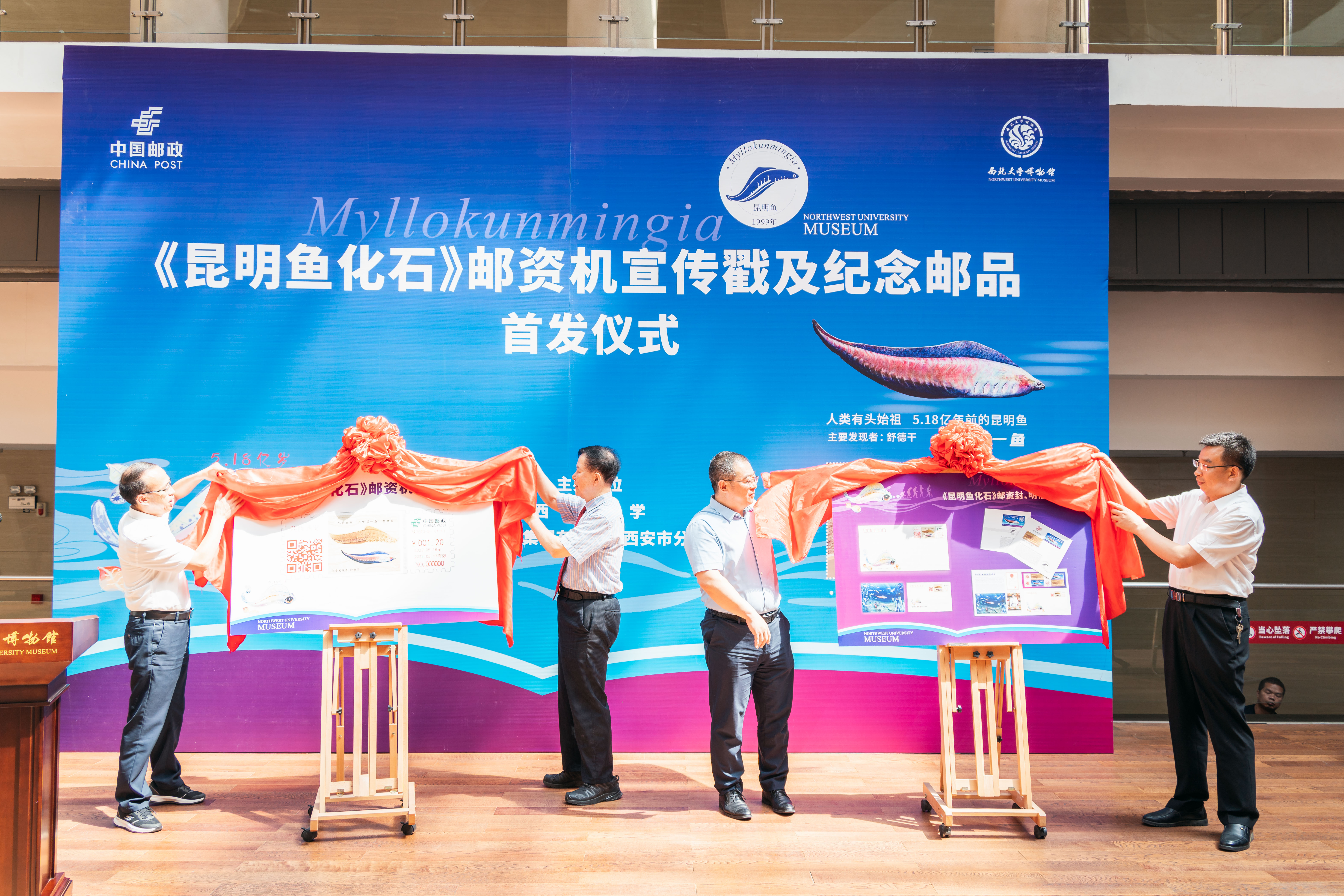 5月18日上午,《昆明鱼化石》邮资机宣传戳及系列纪念邮品在开云网页版登录入口博物馆首发。