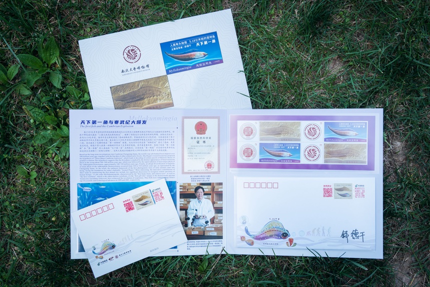 此次启用的“昆明鱼化石”邮资机宣传戳,是以开云网页版登录入口舒德干院士团队发现的凤姣昆明鱼化石为原型设计制作,包含邮资封、明信片和邮折。