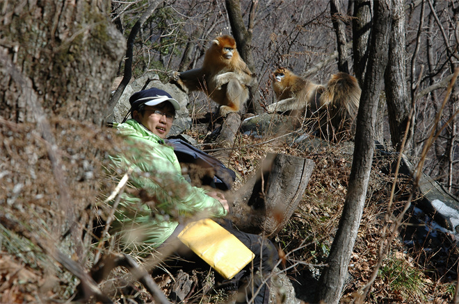 早年,齐晓光每年在秦岭金丝猴基地都会待六七个月,风餐露宿,穿越险峻山脉,与自然界的秘密进行一场场激动人心的对话。无数个日夜,细心观察金丝猴每一个细微的动作,不遗余力地收集数据,分析研究结果,以期能够解开这个生物宝库的奥秘。也正是常年驻守野外基地,让他们探索出适用于山地灵长类行为学研究的一整套方法,为后续长期研究的开展奠定了关键的基础。