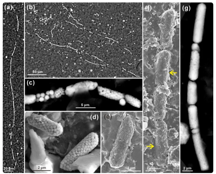研究团队根据化石证据和谱系基因组学分析结果,提出硫酸盐还原菌与地球氧化事件协同演化假说,认为脱硫细菌门首先在24亿年前的大氧化事件期间发生辐射演化,约8.5亿年前演化出丝状多细胞种类;在新元古代末期,地球第二次氧化事件导致海底广泛氧化,丝状种类约在5.6亿年前获得传导电子功能,硫酸盐还原通路逆转,演化成可以跨越氧化还原界面,一端在还原带氧化硫,另一端在氧化带还原氧的电缆细菌。