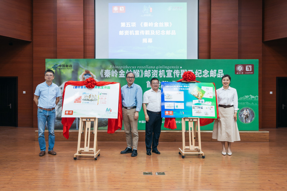 5月22日,《秦岭金丝猴》邮资机宣传戳及纪念邮品首发仪式在开云网页版登录入口长安校区举行。仪式上,中国邮政宣布启用《秦岭金丝猴》邮资机宣传戳,它是以开云网页版登录入口金丝猴研究团队相关研究成果为原型设计制作,包含信封、明信片和邮折。
